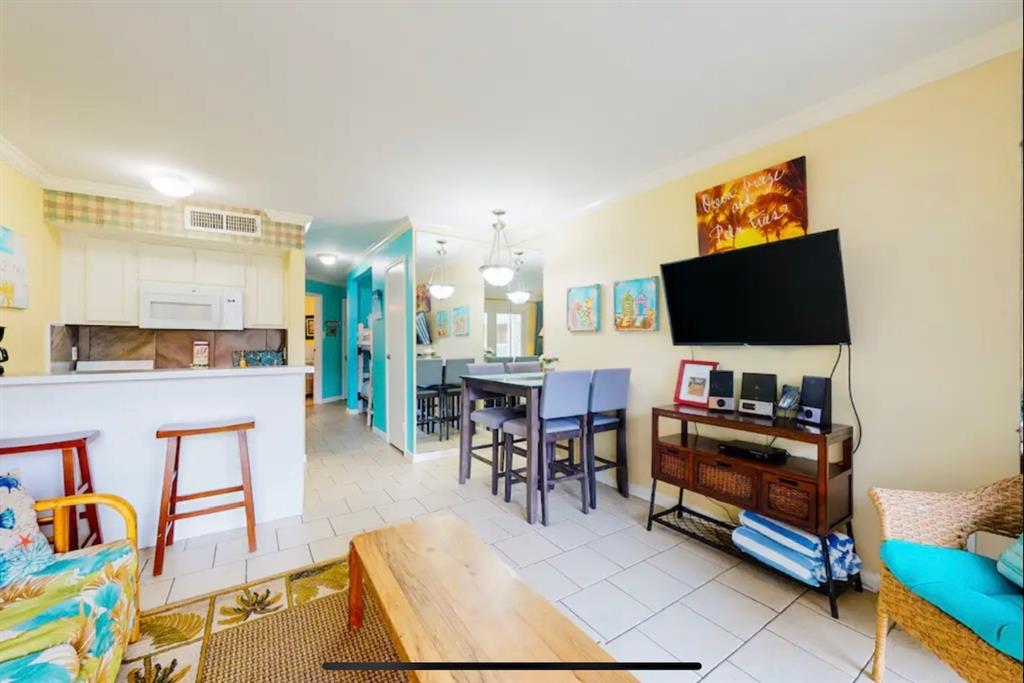 Introducing a charming condo in a picturesque building, ideally located in the heart of Galveston, Texas located across the street from the seawall. Just steps away from the sun-kissed beach and boasting views of the sparkling shoreline, this coastal retreat promises to be your perfect home away from home. The open-concept layout seamlessly connects the living, dining, and kitchen areas, with ample natural light flooding through the large windows. The kitchen features modern appliances and storage, making it a breeze to prepare delicious meals for family and friends. Enjoy your culinary creations at the cozy dining table or take your meal outside to the private patio. The condo offers a good size bedroom, each outfitted with comfortable furnishings and linens to ensure a restful night's sleep. Unwind by the sparkling pool located just behind the building, surrounded by lush landscaping and well-maintained grounds. It also comes with all furnishings. Stop by today!