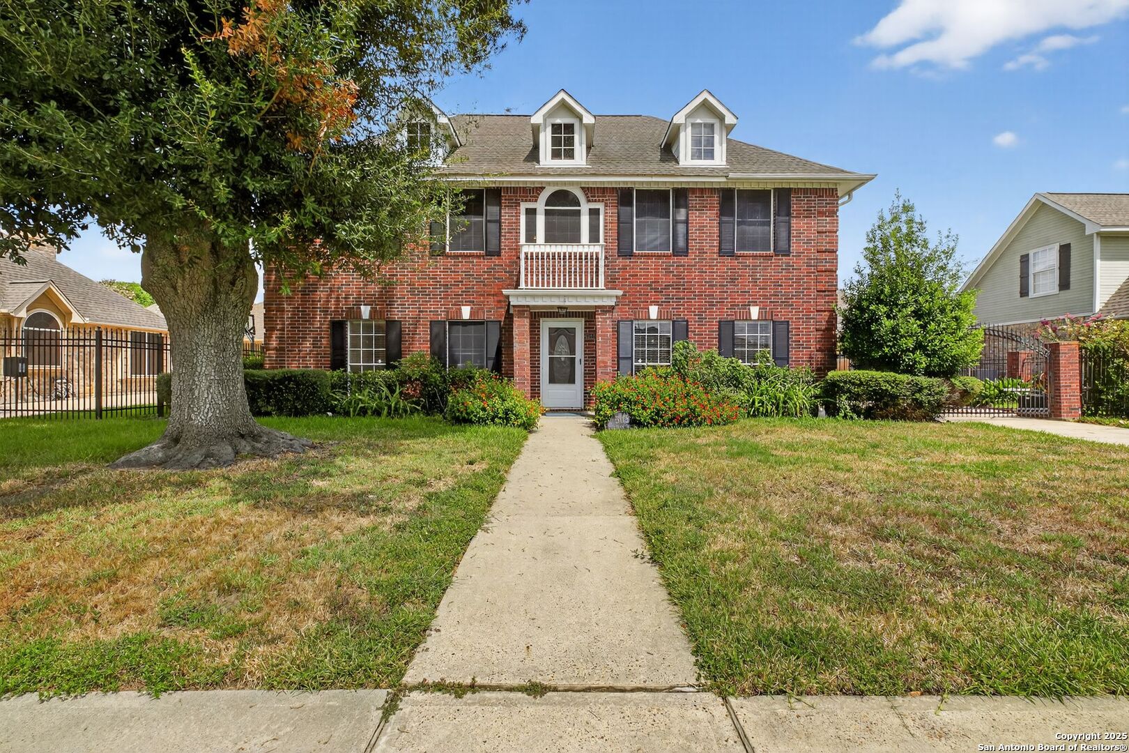 Spacious 4-bedroom, 3.5-bath home on a cul-de-sac in Vista Oaks. Features include a large kitchen with island and gas cooktop, first-floor primary suite with double vanities and walk-in closets, plus a game room upstairs. Detached 2-car garage with bonus room