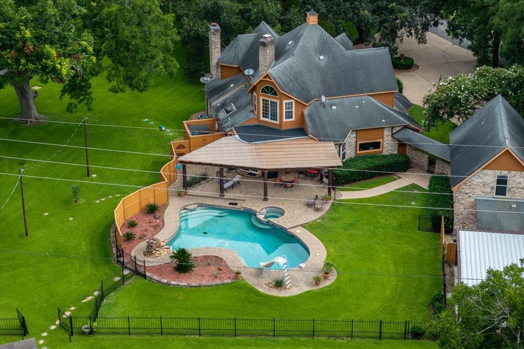 ONE OF A KIND. Peaceful & serene home sitting on over 2 acres of land with mature oak and pecan trees. This gated and private community hosts less than 15 homes.4723 Pecan Lake Ct. sits in the back of the subdivision away from the noise of the roads. Some of the great advantages of this property are:low tax rate of 1.5689, RV Parking pad w/50amp RV plug, 2 car carport, guest suite above garage. As you enter the home you are greeted by a beautiful staircase. To the left is a large diningroom. Adjacent is the kitchen with original and restored oak wood cabinets and a large picture window over the sink that brings natural light into the space. In addition, a commercial hood, Hibachi Grill and new WiFi appliances are a great compliment that can be enjoyed for years to come.To right of the kitchen is the greatroom. Also on the first floor is a primary bedroom with an updated en-suite and traditional sauna, large office and sunroom. On the 2nd level are 2 bedrooms, 2 bathrooms and gameroom.