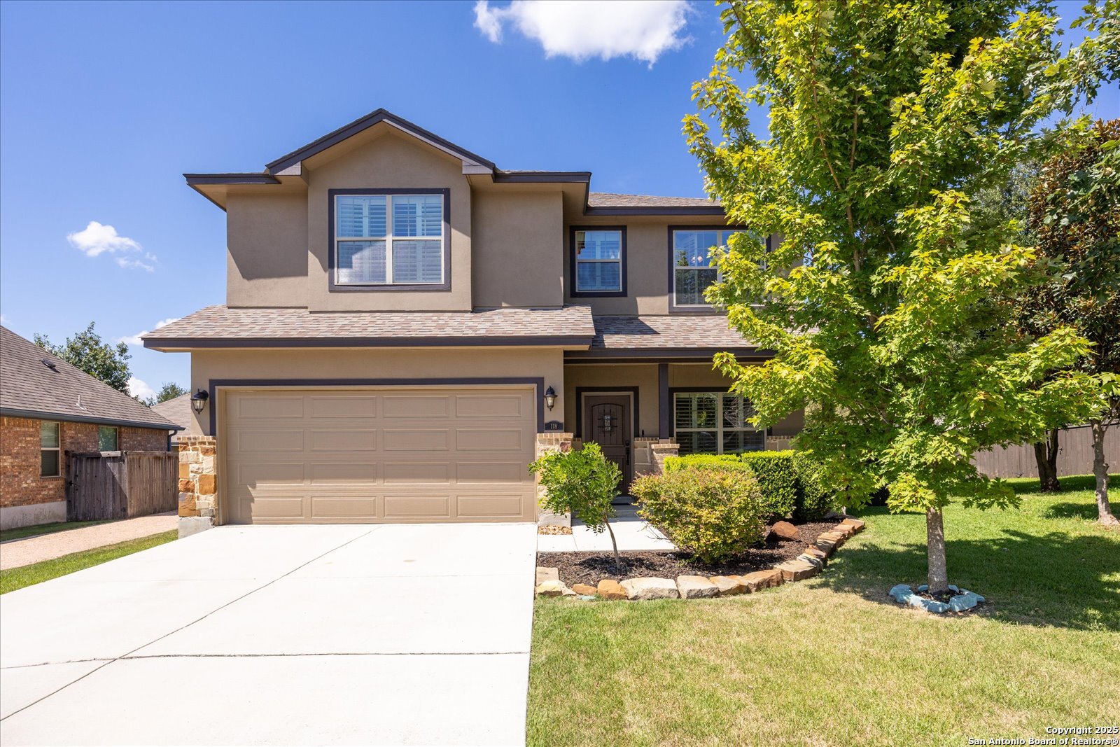 Welcome to this beautifully maintained, spacious home offering the perfect blend of comfort and style. Featuring two generous living areas, this home provides plenty of room to relax, entertain, and create lasting memories. The heart of the home is the gorgeous kitchen, highlighting a striking 7x7 granite island that's perfect for gatherings, cooking, and casual dining. Plantation shutters grace every window, bathing the space in soft, natural light while adding timeless elegance throughout. Stay organized and inspired with two built-in desk areas complete with ample storage-ideal for remote work, homework, or creative projects. Situated on a quiet cul-de-sac, this home offers a serene retreat away from the hustle and bustle. Step outside to a spacious backyard, equipped with a full sprinkler system to keep your lawn lush and green year-round. Whether you're hosting summer barbecues or enjoying peaceful evenings under the stars, unleash your imagination in this highly versatile space. The family-friendly neighborhood features scenic trails and a playground, perfect for kids and nature lovers alike. Enjoy unparalleled convenience with HEB, Walmart and St Peters just under 3 miles away, and Boerne High School only 1 mile from your doorstep. This is more than a house-it's your next chapter.
