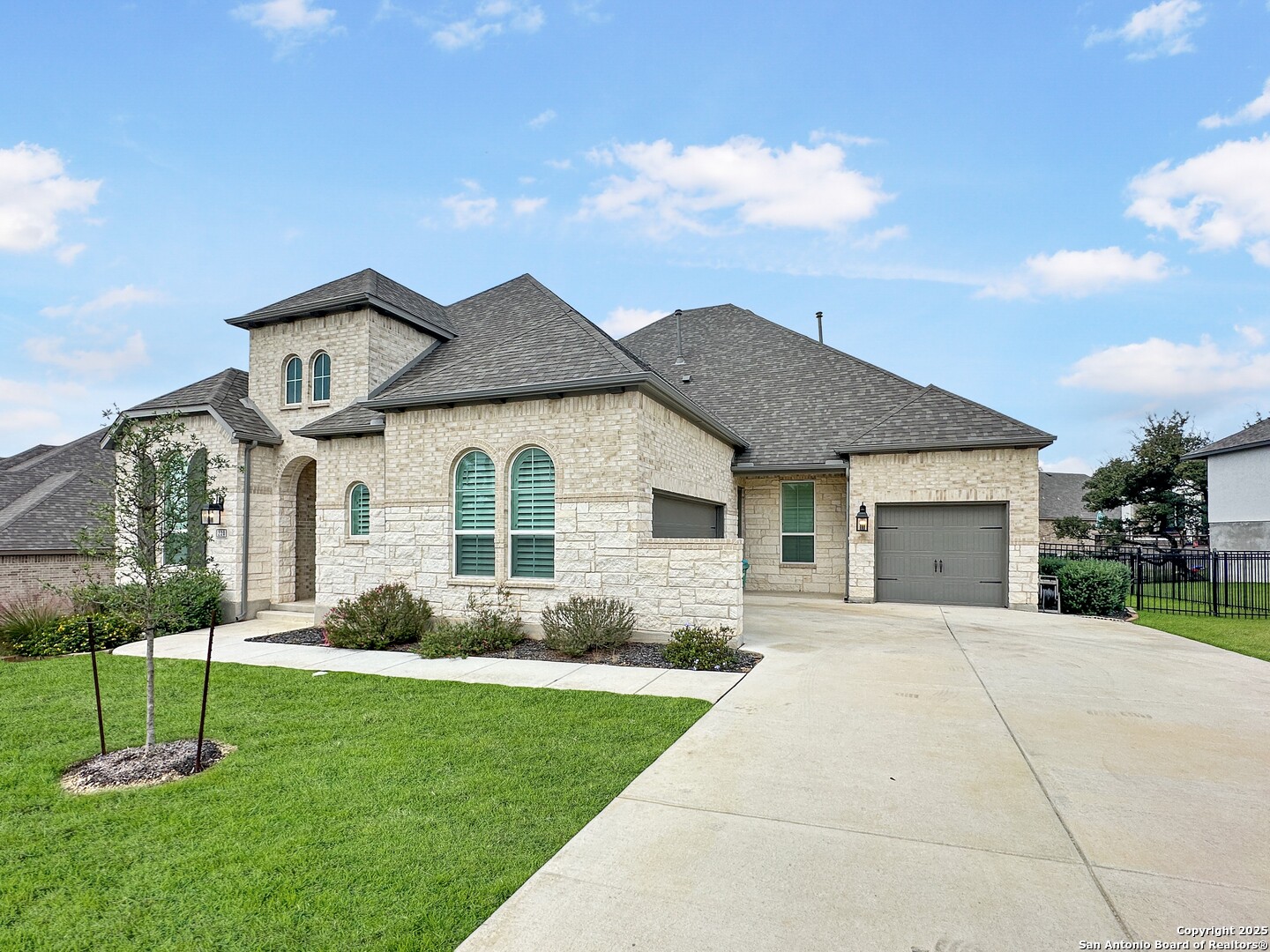 Wow! Take a look at 220 Corazon, a Highland-built home nestled in the heart of the highly desirable Esperanza community of Boerne, Texas! This stunning property, sprawled over a premium oversized lot, redefines luxury living with its 3,271 SF of meticulous designed space. Boasting a functional floor plan of 4 bedrooms, 4 full bathrooms (including 3 ensuites), this home offers both space and attention to detail. The home's sleek, modern design is complemented by the open floor plan that seamlessly connects living spaces, highlighted by tall ceilings and natural light against a backdrop of white interior walls. The stunning kitchen is a culinary dream featuring quartz countertops, and oversized island, gas cooking, an upgraded Electrolux appliances, including built-in double ovens and large gas cooktop. Every detail in the home speaks of luxury, from the wood-look porcelain tile flooring that extends throughout the house to the unique tile in each bathroom, and from the plantation shutters to the water softener and reverse osmosis systems. The primary bedroom is both spacious and functional with its oversized walk-in wardrobe, and spa-like bathroom with a double vanity and gorgeous tile shower. The flex room is pre-wired for a home theatre, Cat6 network wiring, and surround sound in the family room, outside patio and garage is yet another great feature! The private study is also ideal for the work-from-home buyer, while the outdoors is equally as impressive, featuring a large fenced yard with an extended patio perfect for enjoying the serene Texas Hill Country evenings. Located in Esperanza, this home offers access to unmatched community amenities, including a lazy river pool, adult pool, fitness center, clubhouse, dog park, walking trails, kid's park and more! Located in the award-winning school district of Boerne, you can easily walk to the newer Herff Elementary school and can also be shopping and dining in Boerne's hip downtown within just a few short minutes! At 220 Corazon, experience the pinnacle of luxury living in a community that offers the finest in leisure and lifestyle.