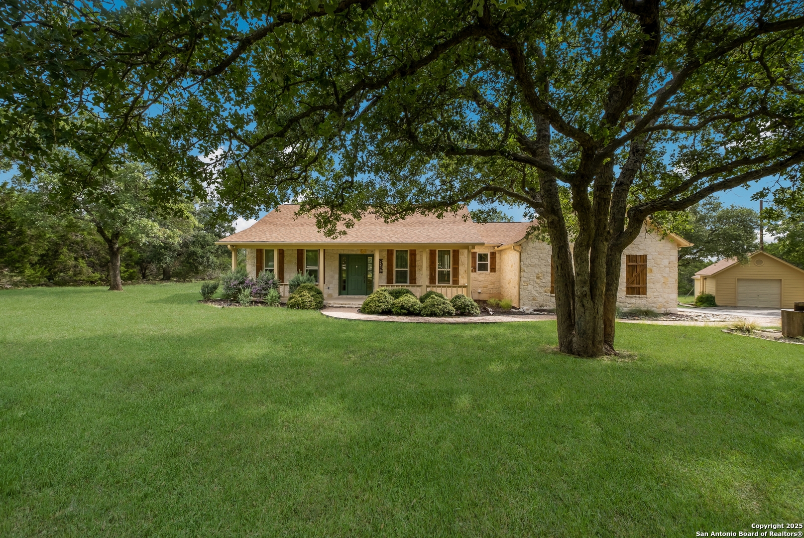 Welcome to your serene Texas Hill Country retreat! This charming 3-bedroom, 2-bathroom home sits gracefully on a sprawling 3.4-acre level lot adorned with majestic mature oak trees. The recently updated kitchen and primary bathroom blend modern convenience with Hill Country charm, while large picture windows frame breathtaking wildlife views that change with the seasons. The heart of the home features a stunning stone fireplace, creating a warm gathering space complemented by beautiful wood floors that flow seamlessly through the living room, dining room, and primary bedroom. The thoughtfully designed 1,768 square feet of living space offers both intimate comfort and room to breathe. Step outside to discover your private oasis, where a covered back patio provides a relaxing outdoor space perfect for quiet morning coffee or evening relaxation. Beyond this peaceful retreat, an extended deck offers the ideal setting for entertaining guests, soaking in stunning Hill Country views, or observing the diverse wildlife that calls this property home. The detached shop completes the outdoor amenities, providing perfect space for storage or pursuing your favorite hobbies. As a member of the HOA, you'll enjoy private access to the pristine Guadalupe River, where crystal-clear waters and cypress-lined banks await. This exceptional property places you minutes from Boerne's charming amenities while providing easy access to Fredericksburg's renowned wineries for weekend tastings and adventures. Quality healthcare remains convenient with excellent medical facilities nearby, and families will appreciate the highly rated Boerne Independent School District schools. Nature enthusiasts will love the proximity to Spring Creek Park and Kreutzberg Canyon Natural Area, where hiking trails wind through stunning limestone formations. The famous Cave Without A Name offers underground wonders just a short drive away. This isn't just a home, it's your gateway to the authentic Texas Hill Country lifestyle, where mature oaks whisper stories and every sunset paints the sky in Hill Country gold.