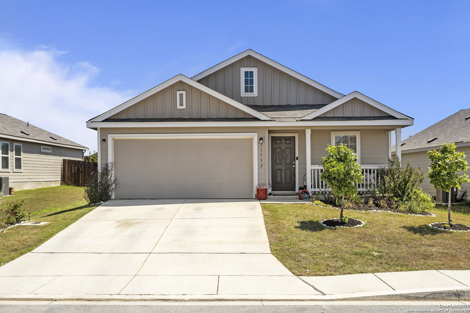 Welcome to your new home at 31592 Meander, Bulverde, TX 78163, a beautifully maintained modern residence built in 2020 that combines comfort, style, and functionality in one inviting package. Step inside to discover an open-concept living space where the living room flows seamlessly into a well-appointed kitchen. The kitchen features gleaming granite countertops and ample cabinet space, perfect for meal prep and entertaining. With four bedrooms and two full baths, every member of the household has their own space, plus common areas that feel generous and bright. The master suite is a relaxing retreat, complete with a full bath that includes a single vanity and a shower tub combo. Outside, enjoy a large backyard ideal for evening gatherings, gardening, or simply taking in the Texas sky. The home also offers the added benefit of solar panels, contributing to energy savings and a smaller environmental footprint. Situated in a friendly neighborhood, you'll find access to community amenities including a pond, playground, and two community pools. Excellent schools are nearby as part of the highly regarded Comal Independent School District. This home is perfect for families, professionals, or anyone seeking a modern, comfortable, turn-key lifestyle in Bulverde.