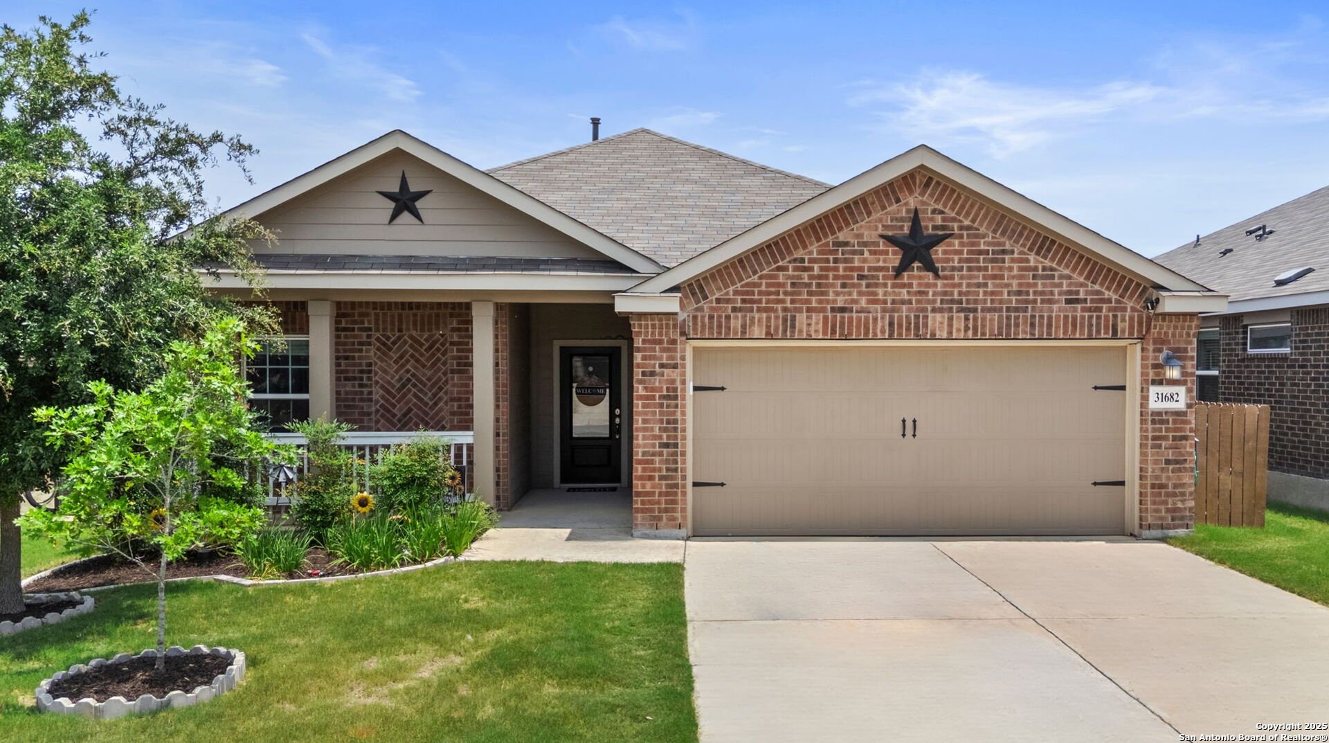 Welcome to 31682 Nimbus Dr. a thoughtfully updated single-story home in a vibrant community offering a wide range of amenities including multiple pools, a clubhouse, jogging and bike trails, a park/playground, sports and basketball courts, a BBQ/grill area, and a fishing pier. Step onto the charming front porch and into a tall, inviting foyer that opens to an airy and open floor plan. The kitchen is a standout with a large island that provides plenty of seating, sleek updated appliances, and a bright eating area perfect for casual meals. The spacious living areas are accented with stylish accent walls that add warmth and personality throughout. The private primary suite includes a beautiful bathroom with double vanities, an upgraded walk-in shower, and an expansive walk-in closet. Flooring has been upgraded in the primary bedroom for a more refined touch. Out back, enjoy a fully fenced yard with a newly extended deck, low-maintenance turf, and a functional shed for extra storage-all while taking in scenic Hill Country views that offer a peaceful and private setting!