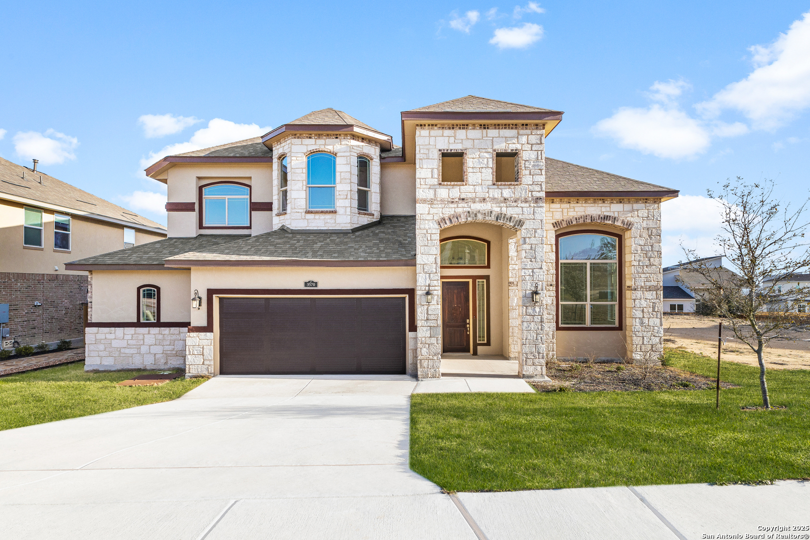 ***OPEN HOUSE - SAT 3/29 & SUN 3/30 - 10am-3pm **Expansive NewLeaf Home with Luxury Upgrades & Endless Space!** Welcome to one of the largest and most stunning floor plans NewLeaf Homes offers! This spectacular two-story masterpiece is designed for elegance and functionality, featuring an open-concept layout with soaring ceilings and a grand spiral staircase that makes a statement the moment you walk in. Entertain with ease in the gourmet kitchen, boasting an oversized island, custom wagon wheel ceiling detail with rich stained alder beams, and seamless flow into the spacious living area. Host dinner parties in the formal dining room, work from home in the flex/study room, and unwind in the game room or private media room-perfect for movie nights! Step outside to your covered patio and expansive backyard, offering endless opportunities for outdoor gatherings. The 2.5-car garage provides ample storage space, rounding out this incredible home's functionality. With luxury finishes, abundant space, and thoughtful design throughout, this home is a must-see for those seeking style, comfort, and room to grow. Don't miss out on this rare gem!
