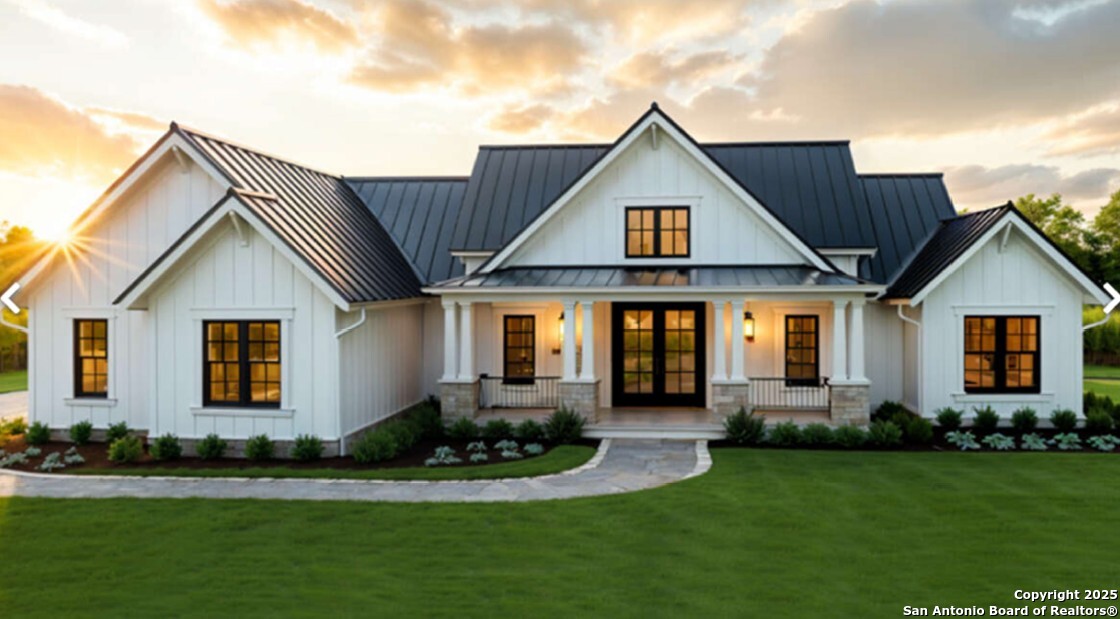 To-be-built modern farmhouse on a scenic 1.67-acre lot in the gated riverfront community of Paradise on the Guadalupe. This one-story 2,663 SF design is tailored for 55+ living, with 3 beds, 2.5 baths, a study/flex room, open-concept kitchen with island seating, vaulted ceilings, and a large cathedral-style back patio. Split layout offers a private primary suite with spa-style bath and walk-in closet, plus two guest rooms with walk-in closets and a dual-vanity bath. This plan can be modified or fully customized to fit your lifestyle-add a casita, 3-car garage, or start from scratch. Room dimensions and layout depend on final plan selected; all builds must be ACC-approved with a 2,600 SF minimum. Gently sloped lot with mature oaks, panoramic views, and Canyon Lake Water Supply (no well needed). Community amenities include private Guadalupe River access, 93-acre park, clubhouse, kayak launch, and trails. Convenient to Canyon Lake, Gruene, New Braunfels, and San Antonio. Turnkey price includes lot, home, site prep, driveway, and septic.