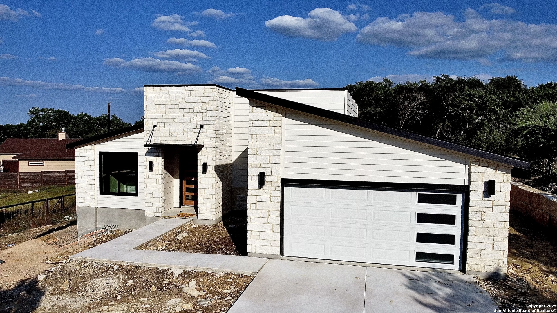 Brand-new contemporary home nestled deep on a spacious 0.5-acre lot in the highly desirable Canyon Lake Island community! This thoughtfully designed open-concept floorplan offers 3 bedrooms, a dedicated study, and 2 full bathrooms-perfect for both everyday living and entertaining. The layout was crafted with functionality in mind, featuring a walk-through utility room that connects to an oversized walk-in closet for ultimate convenience. You'll love the airy, spacious common areas, highlighted by tall ceilings, large windows, and custom-built cabinetry. Natural light floods the home, creating a warm and inviting atmosphere. The oversized garage is fully finished with a sleek epoxy floor-truly move-in ready! Quality construction features include energy-efficient windows, a custom walk-in shower, and distinctive metal accents that set this home apart from traditional production builds. Step outside to a large covered back patio with a beautiful stained tongue-and-groove ceiling-ideal for hosting gatherings or simply relaxing in your private outdoor space. The generous backyard offers endless opportunities for personalization. Enjoy the perks of a close-knit neighborhood with highly rated schools in this sought-after area. Construction is nearing completion-be one of the first to tour this incredible new home without the wait of a long contract period!