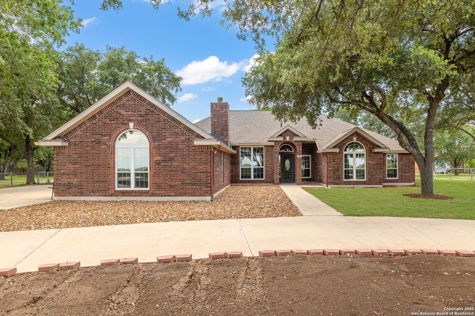 Fully Renovated Showstopper, set on a beautifully landscaped .75 acre lot in Castroville with NO HOA! This immaculate single-story home has been extensively renovated with style, comfort, and quality in mind. Zoned to top-rated Medina Valley schools, it's the ideal blend of modern luxury and peaceful Texas charm. Step inside to discover wood-look ceramic tile flooring, high ceilings, all-new light fixtures, fresh interior and exterior Sherwin-Williams paint, and an open-concept layout designed for both everyday living and entertaining. The living and dining area are well designed offering both comfort and flexibility perfect for entertaining or relaxing with guest. The family room features a gas fireplace with white-washed masonary brick and a custom-stained wood mantel adding a perfect focal point to the room. The kitchen is a chef's dream featuring granite countertops with a waterfall edge, herringbone tile backsplash, upgraded cabinetry with new hardware, Frigidaire appliances and a breakfast nook, perfect for casual dining. The private primary suite features a bay window and a spa-like bath with a freestanding soaking tub, frameless glass walk-in shower, dual granite vanities, and a sleek barn-door entrance. Three additional generous size bedrooms and two additional fully updated bathrooms provide ample space for guests or a growing family. Additional HOME HIGHLIGHTS include a new HVAC system with 10-year warranty, new tankless and gas water heaters, upgraded 200 AMP electrical panel, new lighting inside and out, all new windows, and a 7-zone sprinkler system and so much more (See additional docs). Outside you'll find a two-car garage, with a detached one car garage that can be used for a workshop, new patio slab, fresh sod and landscaping, and plenty of room to entertain or expand. Adjacent to farm fields and in the highly sought-after Medina Valley ISD with no city taxes, this home offers the perfect combination of comfort, convenience, and quality upgrades. Located just minutes from local Castroville dining and retail, Lackland AFB, SeaWorld, Microsoft, Hwy 151, and an easy drive to downtown San Antonio. Schedule your showing today!