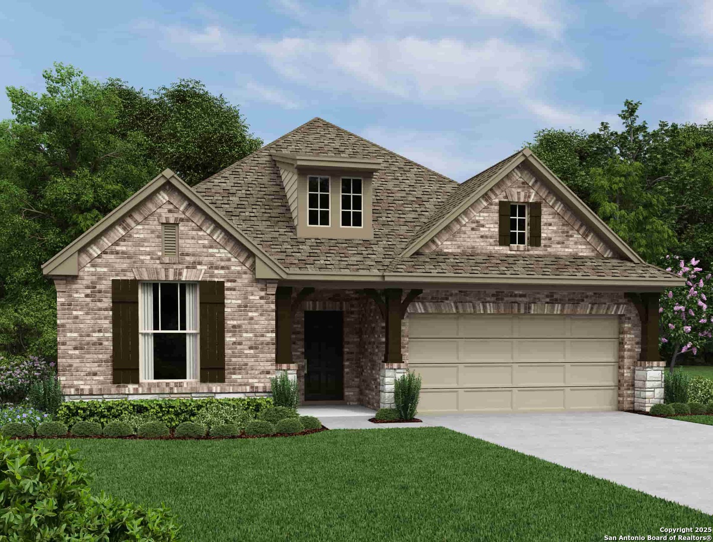 This beautiful 1.5-story home offers a thoughtful layout designed for both comfort and flexibility. Nestled on a serene greenbelt lot, it provides plenty of natural light and added privacy with a fenced yard, covered patio, and sprinkler system. Inside, the open-concept kitchen features an island, walk-in pantry, microwave, stove/range, and self-cleaning oven, flowing seamlessly into both the spacious family room and a large separate dining area-perfect for meals, entertaining, or even serving as an open office or flex space. The primary suite, located downstairs, is a private retreat with a ceiling fan and a luxurious bath including a mud set shower, garden tub, and dual vanities. Two additional bedrooms and full baths offer ample room for family or guests. Upstairs, you'll find a large game room with a full bath, making it ideal for movie nights, hobbies, or an additional guest space. Additional features include walk-in closets, pendant lighting, in-wall pest control, plumb for water softener, 8' front door, and a mix of carpet, ceramic tile, and vinyl flooring. With its versatile layout, greenbelt location, and inviting living spaces, this home is designed to adapt beautifully to your lifestyle. This home features design selections thoughtfully curated by our professional studio team. Each finish, from flooring and cabinetry to countertops and special touches, is chosen with care to create a cohesive and beautifully balanced look. Guided by timeless design principles and inspired by modern lifestyles, the result is a home that is both stylish and welcoming from the moment you step inside. This home is located in Megan's Landing, a vibrant family-friendly community nestled in the scenic Texas Hill Country. Enjoy quick access to shopping, dining, and entertainment, plus nearby outdoor escapes like the Medina River and Government Canyon State Natural Area. With top-rated Medina Valley ISD schools, Megan's Landing offers the perfect blend of natural beauty, convenience, and community for your family's next chapter.