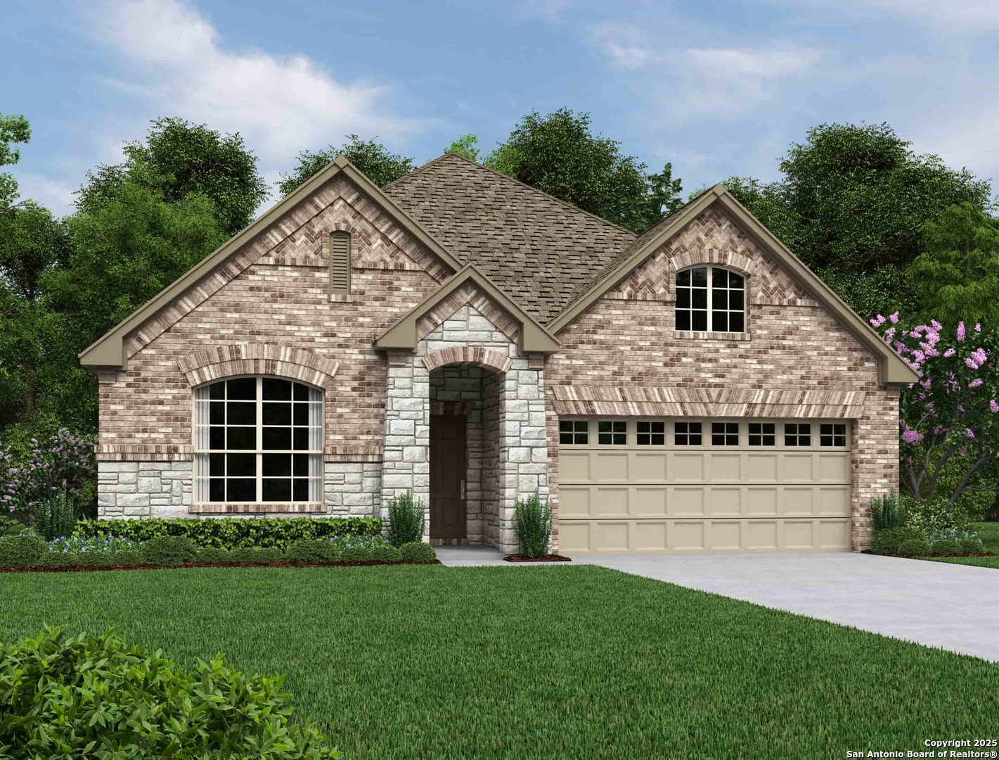 Step into the Del Rio and be greeted by a bright, welcoming foyer that flows effortlessly into the heart of the home-a combined family room and gourmet kitchen. The kitchen is designed for both everyday living and entertaining, featuring an oversized center-island breakfast bar perfect for casual meals, homework sessions, or gathering with friends and family. Sunlight pours into the space through the bay window in the breakfast area, while the adjoining family room is framed by large windows that offer serene views of the backyard. The private primary suite is a true retreat, complete with a spa-inspired bath featuring a spacious two-seat shower and dual vanities for comfort and convenience. Thoughtful design continues with a powder room, coat closet, and a generously sized utility room, all adding functional space to keep everyday life organized. Two additional bedrooms share a well-appointed bathroom, providing space for family or guests, while a covered patio extends the living area outdoors, perfect for morning coffee, evening relaxation, or entertaining in the fresh air. Every detail of the Del Rio is crafted to blend style, comfort, and practicality, creating a home where daily life feels effortless and welcoming. This home features design selections thoughtfully curated by our professional studio team. Each finish, from flooring and cabinetry to countertops and special touches, is chosen with care to create a cohesive and beautifully balanced look. Guided by timeless design principles and inspired by modern lifestyles, the result is a home that is both stylish and welcoming from the moment you step inside. This home is located in Megan's Landing, a vibrant family-friendly community nestled in the scenic Texas Hill Country. Enjoy quick access to shopping, dining, and entertainment, plus nearby outdoor escapes like the Medina River and Government Canyon State Natural Area. With top-rated Medina Valley ISD schools, Megan's Landing offers the perfect blend of natural beauty, convenience, and community for your family's next chapter.