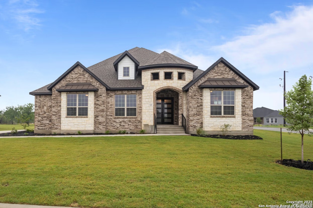 Welcome to the Summerlin, a beautiful one-story sprawling home. The covered front porch and fabulous foyer flow into the spacious family room with views of the covered outdoor living beyond. The stately kitchen is complete with oversized island, plenty of cabinet storage, and large walk-in pantry. Situated just past the kitchen is a roomy media room. The stunning primary suite features two large walk-in closets and a luxurious bathroom with separate vanities, expanded counter space, oversized soaking tub, large walk-in shower, and private water closet. Secondary bedrooms feature walk-in closets two with a shared full bathroom and one with a private bath, which is perfect for a mother-in-law suite. Make it your own with The Summerlin's flexible floor plan. Just know that offerings vary by location, so please discuss our standard features and upgrade options with your community's agent.