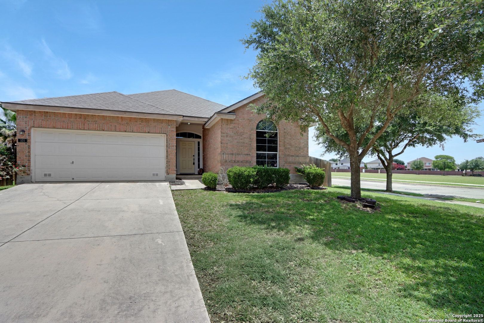LOCATION, LOCATION, LOCATION! Beat the summer heat! Here's your opportunity to live just steps from the community pool! This spacious 4-bedroom, 1 story gem offers comfort, versatility, and style all in one. From the moment you walk in, you'll feel right at home with its welcoming atmosphere and open-concept layout, filled with natural light that flows seamlessly through the living and dining areas. The eat-in kitchen opens directly into the living room-perfect for entertaining or enjoying time together. A flexible dining room space can easily serve as a home office, workout area, or formal dining setup-whatever suits your lifestyle. Enjoy the gorgeous wood-look laminate flooring-no carpet to worry about! Situated on a desirable corner lot and zoned to highly rated Schertz-Cibolo ISD schools, this home checks all the boxes!