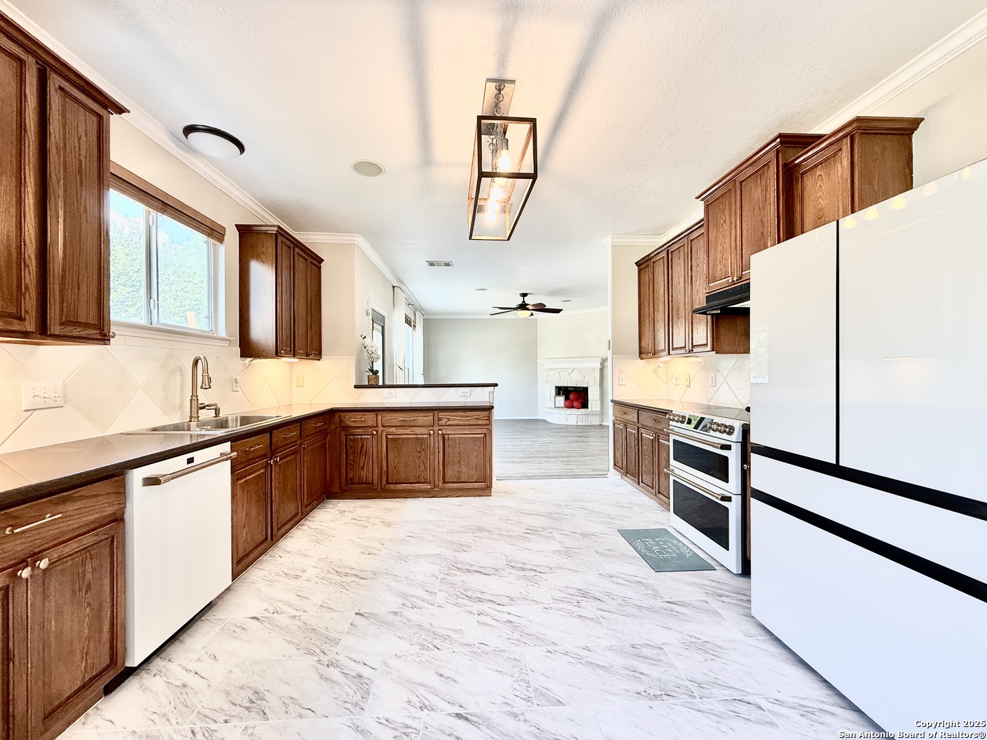 Welcome to 120 Brook Meadows a spacious and well maintained 3-bedroom, 2.5-bath home with an office / flexible floor plan, located in the desirable Charleston Parke community. Now at an improved price of $319,000, this home blends style, space, and value in one inviting package. Inside, you'll find: 2,474 Sq ft of living space, ideal for all families or all remote professionals A dedicated front office or flex space for working from home or creative use. A stunning stone fireplace and chimney that creates a warm, architectural focal point in the main living area. Open concept kitchen with 42" cabinetry, breakfast bar, and plenty of pantry storage. Tile flooring and crown molding throughout the main level for a polished finish. Spacious primary suite with walk-in closet and dual vanities in the ensuite bath Step outside and enjoy a backyard designed for comfort and connection: Mature crape myrtle trees provide color, privacy, and shade Covered patio with outdoor furniture and sail shade, perfect for relaxing or entertaining year round. Fully fenced and spacious ideal for pets, gardening, or play. Located on a quiet cul-de-sac in an established community with convenient access to IH-35, Randolph AFB, schools, parks, and shopping, this home delivers comfort and livability both inside and out.