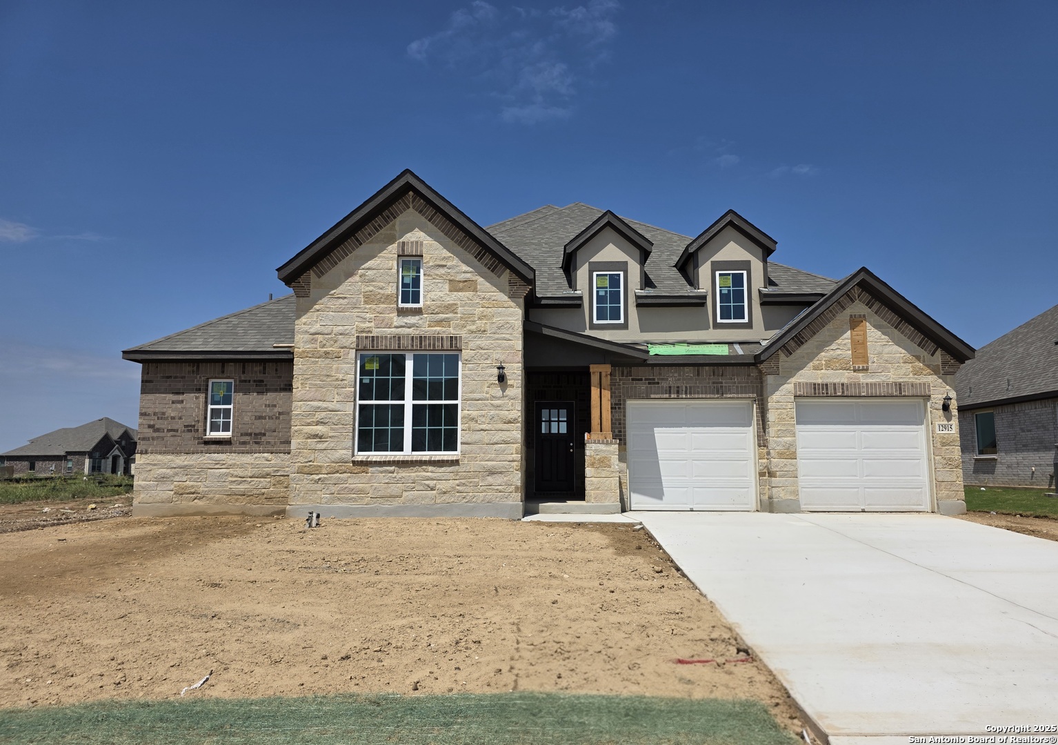 This charming one-story home is designed to combine comfort, style, and functionality for everyday living. The gourmet kitchen, featuring quartz countertops, upgraded cabinetry, and a walk-in pantry, opens seamlessly to the spacious family room, where large windows fill the space with natural light and provide serene backyard views. The secluded primary suite offers a private retreat with an oversized shower, garden tub, dual vanities, and a generous walk-in closet, creating a space for relaxation and rejuvenation. Three secondary bedrooms with ample closets are paired with two well-appointed shared baths, ensuring comfort and convenience for family or guests. Outside, the covered patio invites effortless outdoor living, while the fully landscaped yard with a built-in sprinkler system makes entertaining, unwinding, and enjoying life in your home simple and inviting. This home features design selections thoughtfully curated by our professional studio team. Each finish, from flooring and cabinetry to countertops and special touches, is chosen with care to create a cohesive and beautifully balanced look. Guided by timeless design principles and inspired by modern lifestyles, the result is a home that is both stylish and welcoming from the moment you step inside. This home is located in Saddlebrook Ranch, a master-planned community in the charming city of Schertz-named one of CNN/Money's top small towns. Enjoy easy access to I-35, premier shopping, dining, and Randolph Air Force Base. Planned amenities include a sparkling pool and playground, perfect for family fun. With the highly regarded Schertz-Cibolo-Universal City School District nearby, Saddlebrook Ranch offers the ideal blend of community, convenience, and small-town charm.