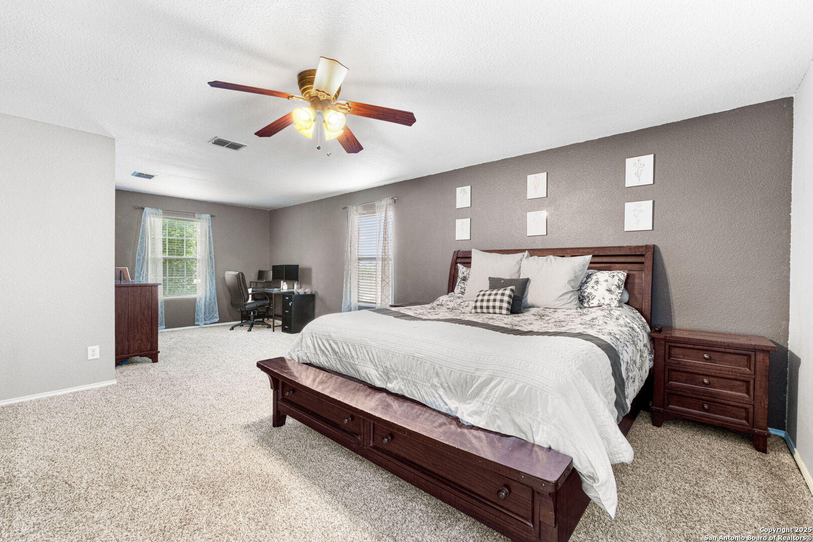 Step into this beautifully maintained 3 bed, 2 1/2 bath home-filled with natural light and comfort at every turn. The living room, originally designed as a living/dining combo, has been thoughtfully reimagined by the homeowner into an expansive oversized living space that welcomes relaxed family time and effortless entertaining. The large family room centers around a cozy corner fireplace, creating the perfect gathering spot, while fresh paint and bright windows give the entire space a clean airy feel! Just off the main living area, you'll find an oversized kitchen offering abundant cabinet and countertop space-ideal for the home chef or casual culinary moments. The expansive layout flows seamlessly into a versatile game room, perfect for family movie nights, board games, or hosting friends . Privacy and comfort await in the primary suite, thoughtfully separated from the secondary bedrooms. It includes a peaceful sitting area designed for relaxation and unwinding. With three well sized bedrooms in total, there's plenty of room for guests, home offices, or growing families. The covered patio beckons for morning coffees and serene evenings-your private retreat for outdoor living. And if convenience matters, this location delivers: just minutes from Randolph Air Force Base and surrounded by a variety of shopping and dining options.