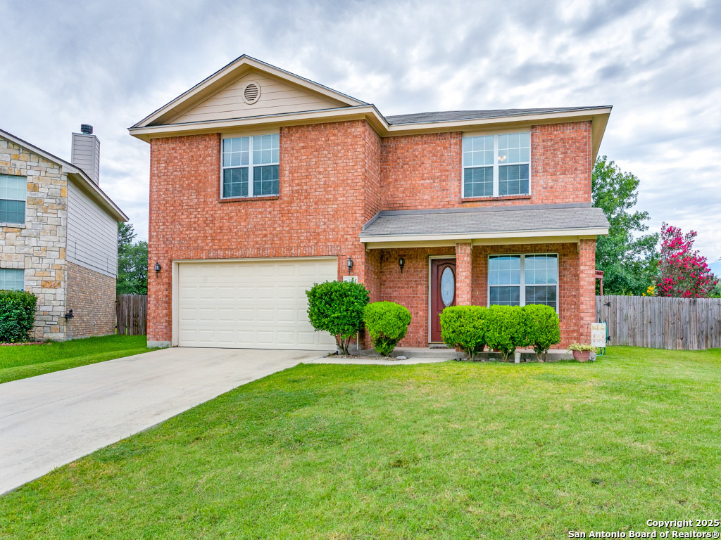 This well-maintained two-story, 4-bedroom home offers a functional and flexible layout, beginning with a formal dining room that also works perfectly as a home office or flex space. The spacious main living area flows seamlessly into the breakfast nook and kitchen, which features an island and a large walk-in pantry. Upstairs, the generous primary suite includes a walk-in closet, separate shower, and garden tub, while three additional bedrooms complete the second level. Enjoy outdoor living in the privacy-fenced backyard. Conveniently located near top-rated SCUCISD schools with easy access to shopping, dining, and I-35.