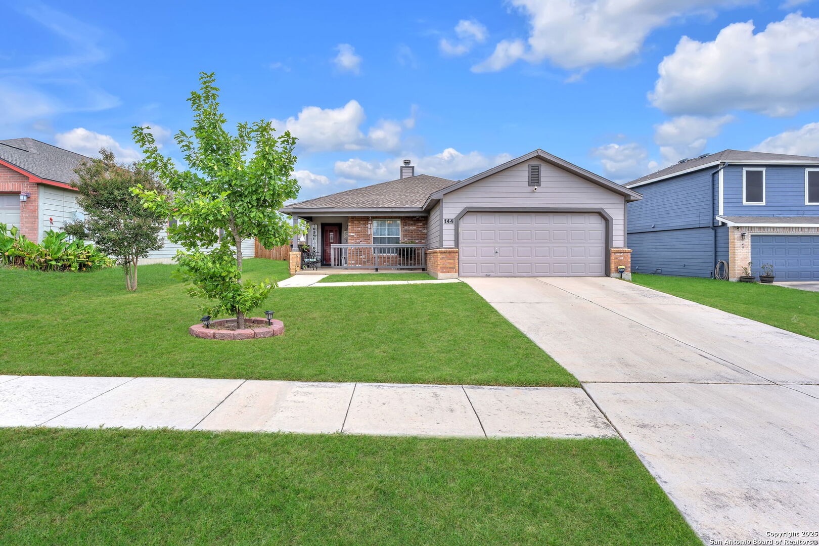 Welcome to 144 Stream Crossing, a meticulously maintained one-owner home in the highly desirable SCUCISD, zoned for Byron P. Steele High School. This move-in ready single-story offers 3 bedrooms plus a private study, ideal for a home office, playroom, or guest space, along with 2 full bathrooms. The open-concept design features wood-like tile flooring throughout the main living areas, plush carpet in the bedrooms, and a bright, inviting layout that makes the home both stylish and functional. The spacious kitchen opens to the dining and living rooms, creating a seamless flow perfect for entertaining or gatherings. The primary suite provides a relaxing retreat with a well-appointed ensuite bath featuring a dual vanity, separate tub and shower, and generous closet space. Pride of ownership shows in every detail, from the carefully chosen finishes to the immaculate upkeep of the home. Step outside and enjoy the large covered patio, perfect for morning coffee, evening relaxation, or hosting weekend barbecues. With the convenience of nearby shopping, dining, and quick access to major highways and Randolph AFB or Fort Sam Houston, this home truly combines comfort, convenience, and lasting value. Schedule your private showing today and experience all that 144 Stream Crossing has to offer!