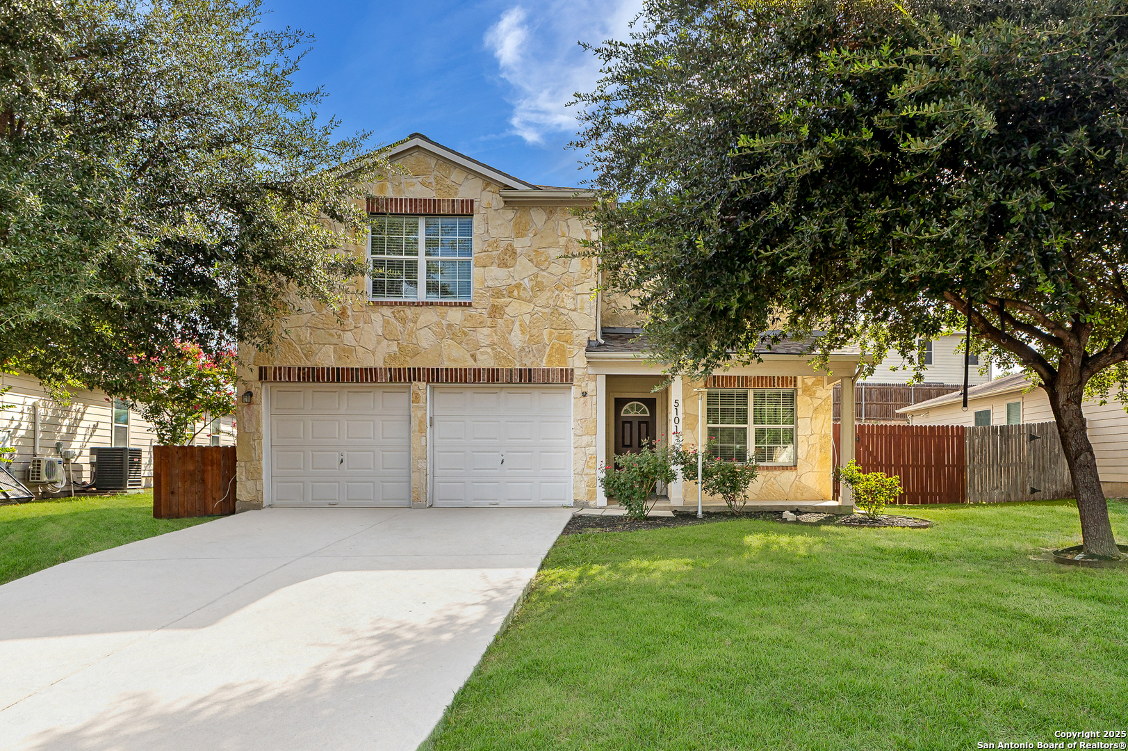 ***SELLERS CONCESSIONS OFFERED $5000**** Welcome to a beautifully maintained 4-bedroom, 2.5-bath home with 2,250 sq ft of living space, perfectly situated on a spacious corner lot in the desirable Ridge at Scenic Hills. This two-story home features an open-concept layout with gleaming laminate flooring (no carpet on the main floor), a bright living and dining area, and a modern kitchen with stainless steel appliances, smooth countertops, and an island ideal for gatherings. The downstairs primary suite offers a private retreat with a large walk-in closet, dual vanities, a garden tub, and separate shower. Upstairs, you'll find three additional bedrooms and a versatile loft/game room perfect for entertaining or family time. The exterior boasts a charming stone-and-brick facade, a privacy-fenced backyard, a sprinkler system, and a two-car garage. Located within the Schertz-Cibolo-Universal City ISD and just minutes from I-35, shopping, dining, and Randolph AFB, this home combines comfort, style, and convenience, perfect for any lifestyle.