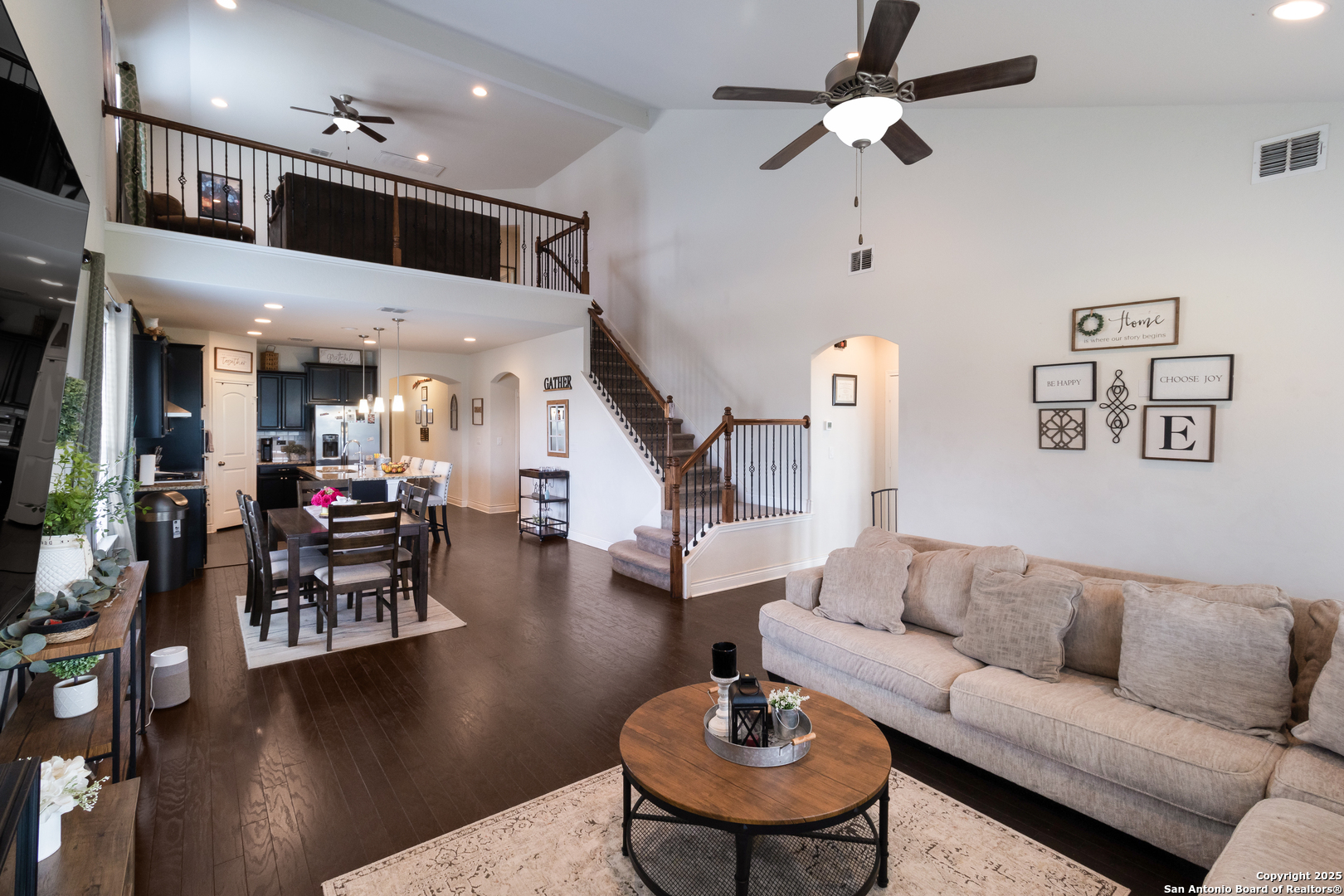 ASSUMABLE LOAN! Immaculately maintained Home in the highly sought-after HOMESTEAD Community. Located on a corner lot with a GREENBELT overlooking the walking trails in a quiet, established neighborhood. This floor plan features high ceilings, boasting an open, spacious, and grand feel. This kitchen is the heart of the home, with gas cooking, and this open concept kitchen flows effortlessly into the living room, creating a perfect space for entertaining or relaxing with the beautiful views. It also features an oversized family room upstairs for movie night. This home includes builder upgrades with wood flooring, extra carpet padding, subway tile backsplash, granite counters, and river rock walk-in owner's shower in the spacious suite, to include the extended covered patio to enjoy the summer barbecues. Community offers resort-like amenities including a pool, splash pad, fitness center, park, playground, and jogging trails! Conveniently located close to I-35, 1604, Randolph AFB, shopping, and restaurants. A must-see! Schedule your showing today.