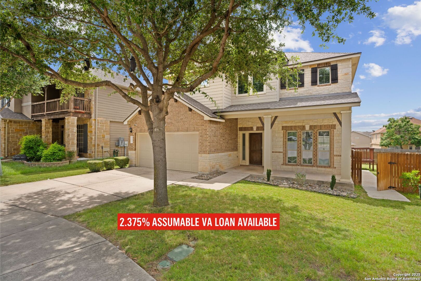 VA Loan at 2.375%! Qualified buyers can sidestep the typical mortgage process and assume the seller's existing loan-saving thousands annually! Welcome to 105 Highland Pl in Cibolo's sought-after Saddle Creek Ranch! This 4-bed, 3-bath home backs to a greenbelt and is loaded with updates and modern touches. Inside, you'll love the tile floors downstairs and luxury vinyl upstairs-no carpet in sight. The kitchen boasts granite countertops and opens to a spacious living area and formal dining room, making it perfect for entertaining. A downstairs bedroom and full bath are ideal for guests. Head upstairs to a loft-style living space and three more bedrooms, including a roomy primary suite with a barn door entry, soaking tub, walk-in shower, dual vanities, and a custom closet. Other highlights include updated lighting, a refreshed laundry room, and a partially renovated upstairs bath. Outside, enjoy an extended patio, a storage shed, and greenbelt privacy. Major updates: 2024 Trane HVAC, newer water heater and softener, and a 2022 roof. The community features a pool, clubhouse, trails, fitness stations, and more-all just minutes from Steele HS, FM 1103, and JBSA Randolph.