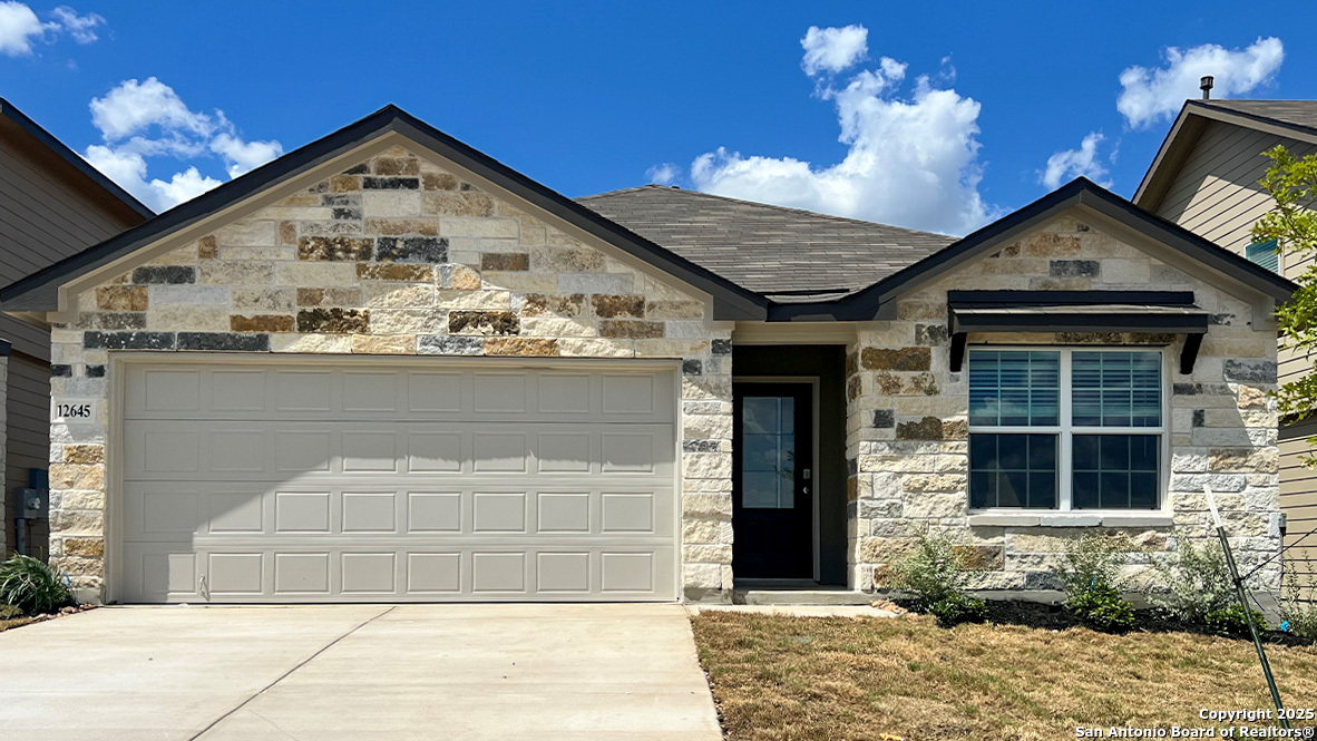 The Bryant is a stunning single-story home featured at Avenida in Converse, TX. The Bryant is sure to impress with its selection of 3 front exteriors, 4 bedrooms, 2 bathrooms and 2-car garage. Welcome guests as they walk through the elongated foyer with a decorative nook wall feature to the spacious eat-in kitchen. Facing the blended dining area and living room, the kitchen includes an oversized island, corner pantry with shelving, plenty of cabinet storage, quartz countertops, stylish subway tile backsplash, stainless steel appliances, and a gas cooking range. The private main bedroom is located at the back of the house and features a relaxing ensuite bathroom complete with double vanities, a garden tub, walk-in shower, and a spacious walk-in closet. If privacy is your top priority, this bathroom comes standard with a separate water closet. Two secondary bedrooms are located off the entry and the other is centrally located off the kitchen. All have quality carpet, spacious closets and windows for plenty of natural lighting. Whether these rooms become bedrooms or other bonus spaces, there is sure to be comfort and functionality. Additional features include tall 9-foot ceilings, 2-inch faux wood blinds throughout the home, luxury vinyl plank flooring in the entry, family room, kitchen, and dining area, ceramic tile in the bathrooms and utility room, and pre-plumb for water softener loop. Relax outside on a covered patio (per plan) located off the family room and enjoy full yard landscaping and full yard irrigation. You'll enjoy added security in your new home with our Home is Connected features. Using one central hub that talks to all the devices in your home, you can control the lights, thermostat and locks, all from your cellular device.
