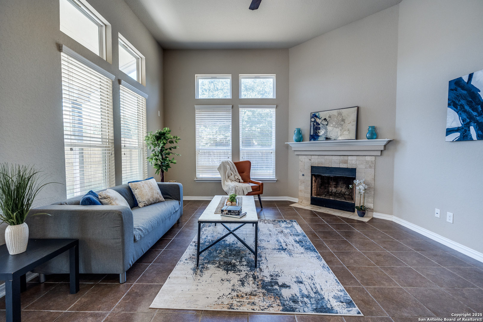 Stunning, well-maintained one-story home in a highly desired neighborhood at the Escondido Park. This pristine residence features 3 spacious bedrooms, 2 full bathrooms, and a 2-car garage. Enjoy added upgrades, including a water softener system and a full sprinkler system. Step inside to discover an inviting, open-concept layout featuring a spacious living room with a cozy fireplace, high ceilings, and an abundance of natural light throughout. The gourmet kitchen is a chef's dream, featuring granite countertops, stainless steel appliances, a large island with a breakfast bar, and custom cabinets. The kitchen seamlessly flows into the spacious living and dining area, perfect for entertaining or hosting family gatherings. The master suite boasts a full bath with a walk-in shower, separate tub, double vanity, and a generous walk-in closet. Located in a peaceful, quiet area near Randolph AFB, with easy access to Loop 1604 and I-10. You've got to see it!!! ***OPEN HOUSE Saturday, September 27th from 12:00 pm to 4:00 pm***