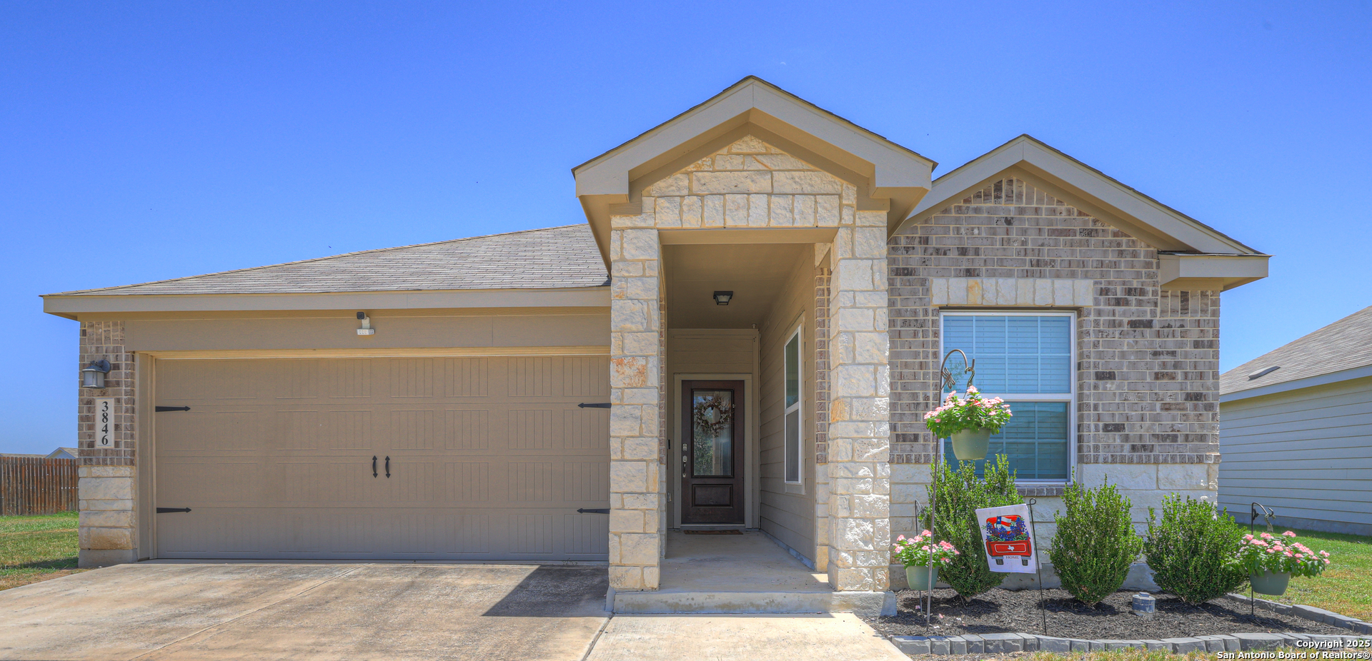 **SELLER OFFERING $5000 IN CLOSING COST. Welcome to this charming 3-bedroom, 2-bath home tucked away on a peaceful cul-de-sac, featuring a striking rock and brick exterior. Inside, you'll love the open-concept layout that seamlessly connects the kitchen, dining, and living areas-perfect for both entertaining and everyday living. The kitchen has stainless steel appliances, a breakfast bar, and abundant cabinetry. The spacious primary suite is thoughtfully separated from the secondary bedrooms for added privacy and includes an ensuite bathroom with dual vanities and an oversized walk-in shower. Located in the desirable Paloma community, residents enjoy fantastic amenities such as a playground, splash pad, and scenic walking trails. With convenient access to Loop 1604 and I-10, commuting is a breeze!