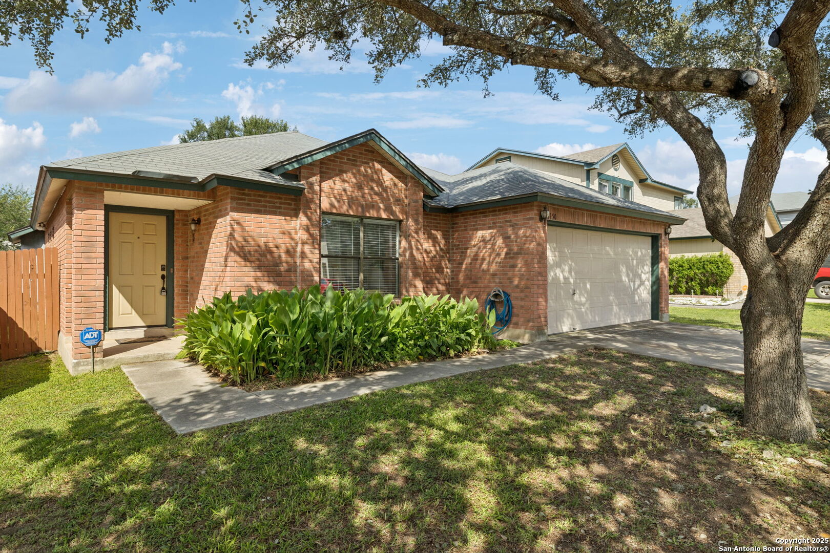Welcome to your dream home! This beautifully maintained 3-bedroom, 2-bathroom single-story gem offers 1,862 sq. ft. of bright, open living space and effortless charm - all on a level lot with gorgeous curb appeal and no stairs to worry about! From the moment you arrive, you'll be impressed by the full 4-sided brick exterior and inviting layout. Step inside and enjoy a spacious open-concept floorplan that's flooded with natural light and perfect for both everyday living and entertaining guests. The heart of the home is the kitchen, complete with a large island, tons of cabinet space, and a walk-in pantry/laundry combo for ultimate functionality. The oversized living area flows easily into the dining space - ideal for game nights, dinner parties, or cozy evenings in. Retreat to the private primary suite, featuring a large walk-in closet and en-suite bath, while two additional bedrooms offer flexibility for guests, kids, or a home office. Need extra room? You'll love the converted garage space - perfect as a game room, media room, or second family room! Outside, relax or entertain under the spacious covered back deck, overlooking a peaceful yard with a storage shed and plenty of room to enjoy the outdoors. Nestled in a prime location near top-rated schools, The Forum shopping center, Randolph AFB, BAMC, and I-35, this home offers the perfect balance of comfort, style, and convenience. Don't miss your chance to own this one - schedule your showing today and make it yours before someone else does!