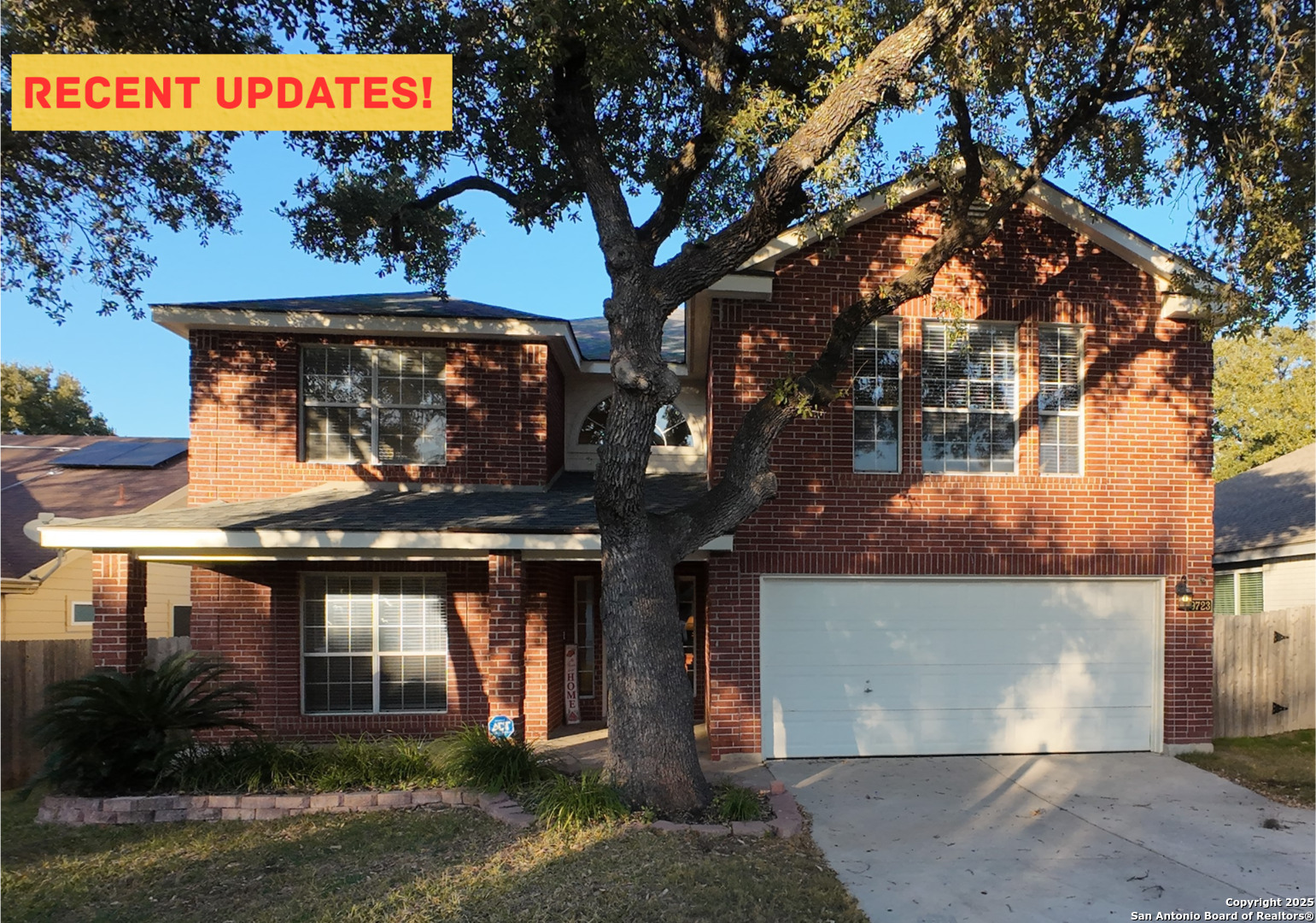 Freshly Updated! Brand-New A/C 7/2025, Roof 8/2025 and Garage Door 9/2025! - Welcome to 9723 Dahlia, a beautifully maintained 3-bedroom, 2.5-bath, 2-story contemporary home in the sought-after Sedona neighborhood. This 1 Owner home built by Continental offers 3,024 sq. ft., and combines spacious living with thoughtful updates. The main level features a formal dining room, private office, living room, and an open kitchen with breakfast dining. The kitchen and all bathrooms boast granite countertops, updated fixtures, with fresh LED lighting in kitchen. A large walk-in pantry leads to the laundry area, while solid surface flooring throughout-hardwood, ceramic tile, and laminate-ensures low-maintenance living. Upstairs, the split layout offers privacy for the primary suite, with bedrooms 2 and 3 on the opposite side. The expansive game room is perfect for a second living space or entertainment area. Outdoors, mature shade trees grace both front and back yards, a welcoming front porch offers room for seating, and a large backyard deck provides the ideal spot for gatherings. Located in Northside ISD and close to schools, shopping, dining, entertainment, medical facilities, and major roadways, this move-in-ready home is a rare find. Schedule your showing today!!