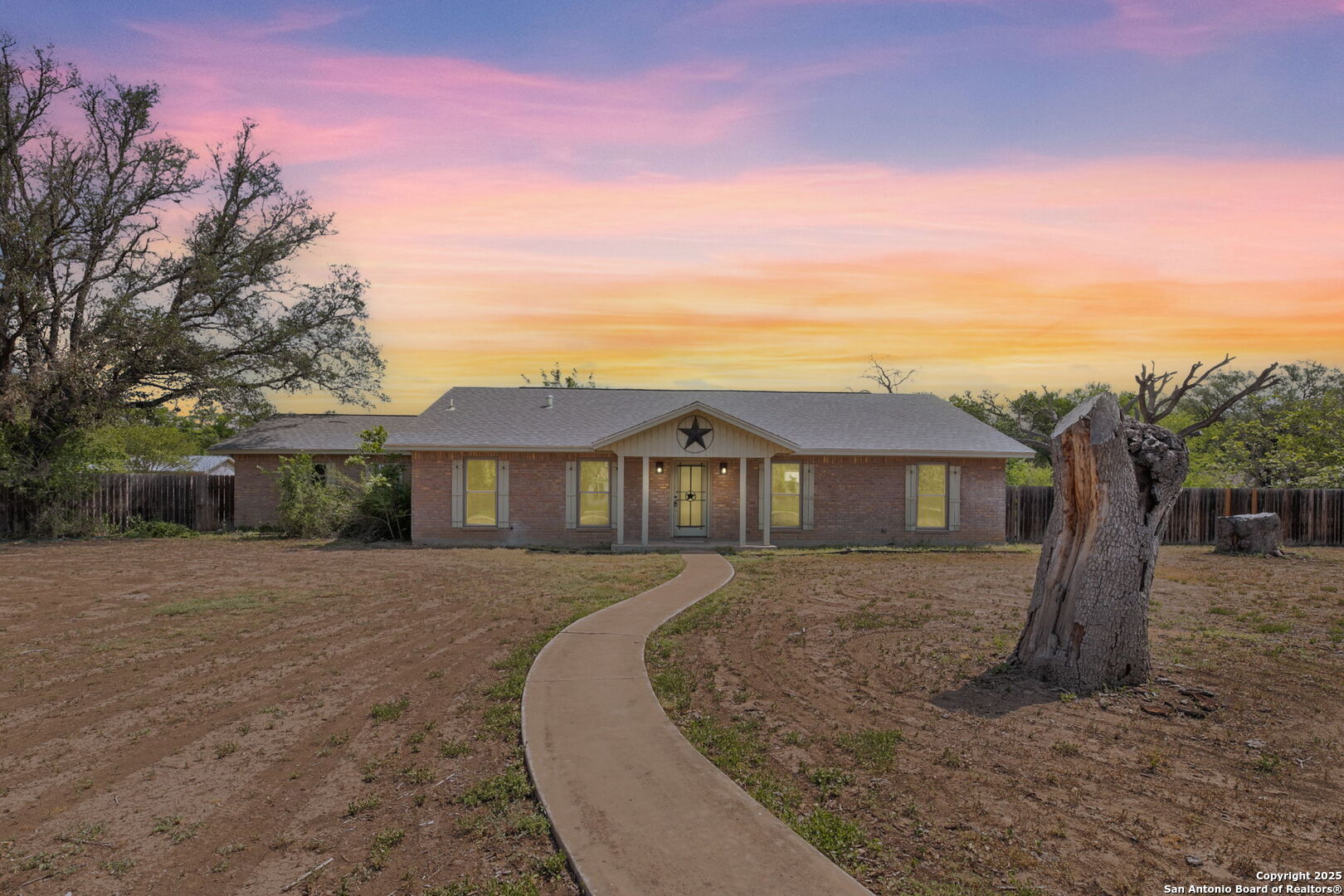 Welcome to this beautiful, recently remodeled home in the highly sought after neighborhood of Kollman Oaks in Hondo!! The large, open kitchen has custom cabinetry with tons of storage space including pull-out storage drawers in the pantry. Just as expansive are beautiful quartz countertops providing ample room if you're a baker or plenty of area for food prep and serving!! The kitchen overlooks the combo dining and living area, making it great for hosting gatherings! The spacious living area has a vaulted ceiling and wood beam accents. A back door in the living area opens out to a large covered back patio and a huge back yard that is privacy fenced with an alley entrance onto a concrete drive leading to the garage and includes a spacious storage building or flex space. The huge front yard is a blank space with endless possibilities as well as a circle driveway for additional parking! This is a wonderful, spacious home on a huge lot in a beautiful subdivision! Note: There are several trees in the yard that have been cut down due to Oak Wilt. Entertainment center is negotiable.