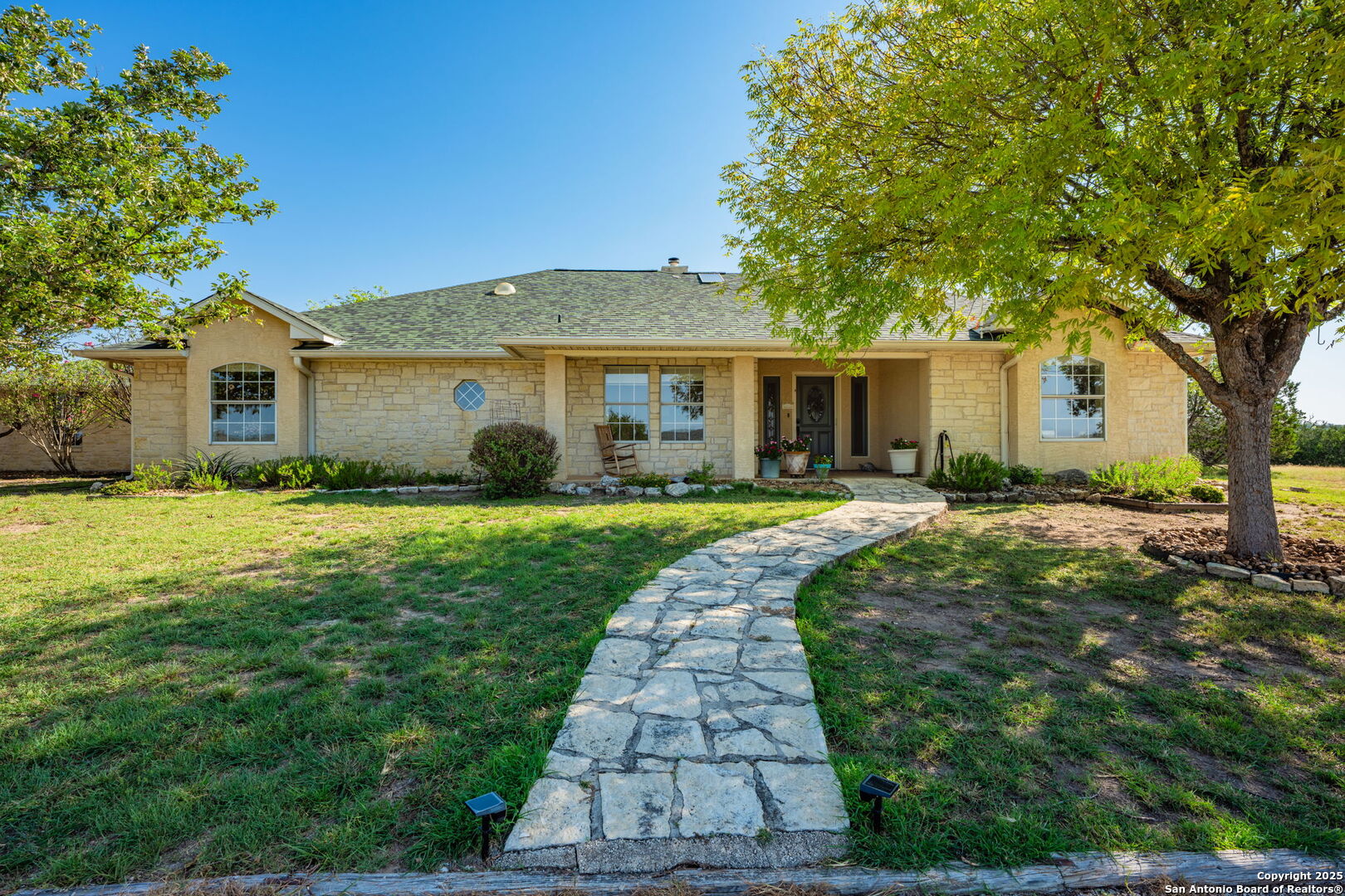 Gorgeous country homestead located south of Kerrville on Lower Turtle Creek Rd E, off of Highway 16. Immaculately kept ranch style stone home with 3 bedrooms & 3 full baths. Open floor plan with a main living area and 2 flex spaces that would be perfect for an office, music room or play area. Updated kitchen with shaker style cabinets, quartz countertops, a butcher block island and new Whirlpool electric range. Enclosed back porch area is a beautiful, light and bright 2nd living area with lots of windows and hardwood floors. Large primary bedroom has an ensuite bath w/ built-in linen closet, an exterior door and a large walk-in closet. The 2 guest bedrooms each have their own bathroom. There is a perfect view from the front of the house of a vineyard that is located across the road. Attached 2 car garage with additional storage. Carport located on the side of the home and storage shed located behind the home. Home sits off the road which provides the perfect spot to feel secluded in the country, but close to town and all of the amenities that Kerrville has to offer.