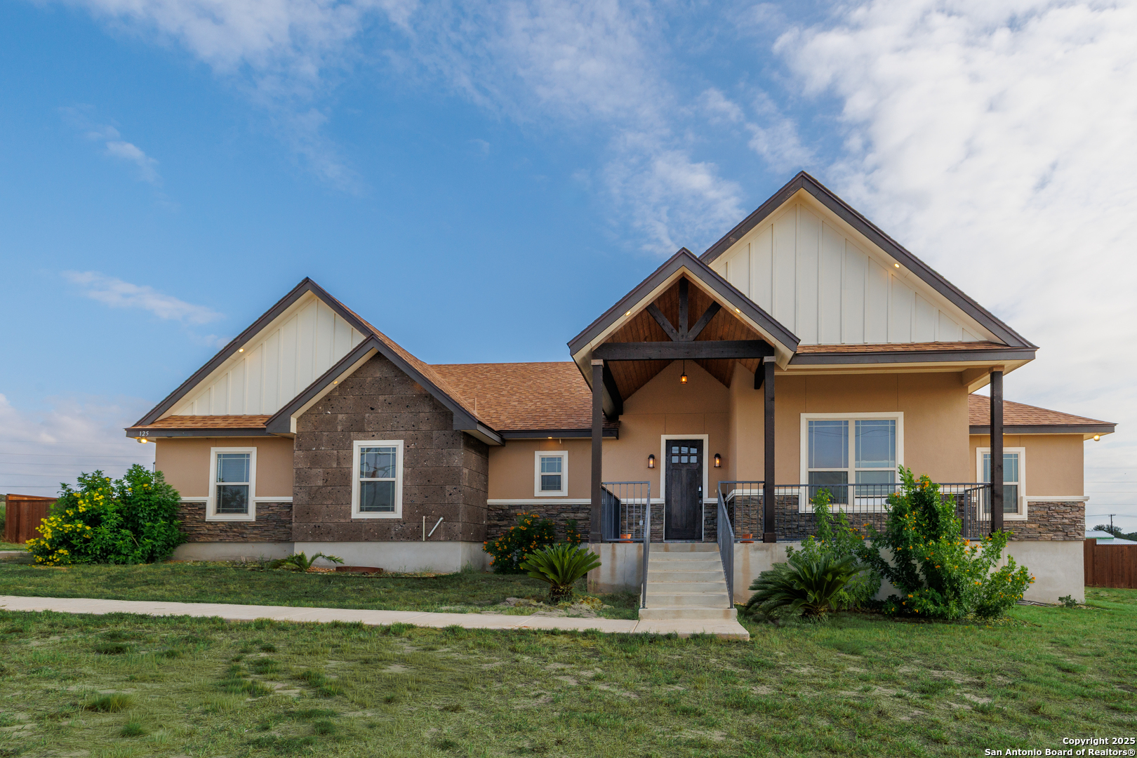**$20,000 Price Reduction!** Welcome to your private oasis in the heart of La Vernia! This beautifully designed 4-bedroom, 3.5-bathroom home is nestled on 1.03 acres in a peaceful, established neighborhood-offering a rare blend of style, comfort, and space both inside and out. Step inside to find a bright, open-concept layout filled with designer touches and smart functionality. Tile flooring flows throughout the home, complemented by thoughtful ceiling and window details that add warmth and character. The heart of the home-the kitchen-shines with a large stainless steel basin sink, oversized pantry, pot filler, and stacked rock accents that mirror the home's exterior and bring a touch of rustic charm indoors. The center island doubles as a stylish focal point and gathering space. Each bedroom is generously sized, while two primary suites offer flexibility for guest accommodations. The custom primary closet provides built-in organization, and the en suite bath is a spa-like retreat featuring double vanities and a beautifully tiled walk-in shower. Step outside to your oversized covered patio, the perfect spot for morning coffee or evening entertaining. Just beyond, a sparkling in-ground pool awaits-set within a fully fenced backyard that offers complete privacy and plenty of room to relax or play. With an oversized 2-car garage, long driveway, and just minutes to shopping, dining, and schools, this home checks every box. Whether you're looking to escape the city or entertain in style, this is a place to truly label home!