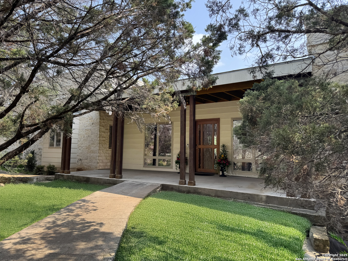 Mariposa House is a one-of-a-kind four-bedroom/four bath 3,721 square foot custom limestone exterior house on seven acres of enchanted forest teaming with wildlife in New Braunfels. Mariposa House is named for its custom butterfly sculpture with hundreds of butterflies suspended from the 20-foot kitchen ceiling. The centerpiece of this extraordinary home is its vast living area, with a wall of floor-to-ceiling windows providing a spectacular view of the property's forest and wildlife. A unique three-dimensional stucco woodburning fireplace adds warm charm to the living area space. His & her offices with floor-to-ceiling windows open onto the living area. Mariposa house's generous U-shape kitchen includes an enormous Island with a Black Pearl Granite countertop, stacked Upper Cabinets w/ Glass Fronts Lighting (52" Uppers), LG Refrigerator Conveys (French Door), Dacor 5 burner electric cooktop complete with an industrial vent soaring to the kitchen's 20-foot ceiling. The kitchen also features a workstation, extra deep kitchen sink, instant hot water spigot, a pantry w/custom built-in wine storage, and a breakfast bar. Mariposa House's primary bedroom opens onto a private patio facing the forest. The dedicated master bath includes a whirlpool bath and a separate large walk-in shower. His and her closets adjoin the master bath. An oversized 80-gallon water heater with circulation pump, dedicated to the primary living residence, assures a virtually endless supply of hot water. Mariposa House's east wing guest section includes three guest rooms with dedicated baths. The east wing comes complete with its own independent heat pump, Nest smart thermostat, and water heater. Mariposa House is a very special home, built for very special people! GENERAL AND KITCHEN FEATURES: Solid wood 4x8 leaded glass entry door, Scored stained concrete throughout, Porcelain tile in baths, Large picture windows, Oak tongue in groove ceiling in common areas, All Limestone exterior, Derbigum Roof, Double sided stucco wood burning fireplace, Ample closet space throughout home, His & hers custom closets in master bath, All wood custom cabinets, Whirlpool tub in master bath, Separate master bath large walk-in shower with rain showerhead & handheld sprayer, Large U-shape kitchen with enormous island and 20' ceiling, Black Pearl Granite countertop, LG refrigerator conveys (French door), Dacor 5 burner electric cooktop, Stacked upper cabinets w/ glass fronts & lighting (52" uppers), Workstation extra deep kitchen sink, Instant hot water spigot, Pantry w/ custom built-in wine storage, Breakfast bar, Pull out trash, mixer lift, pull out shelves, spice pull-out, 8 x 7.5 Greenhouse, 3 separate heat pumps with Nest smart thermostats, Tesla charger, One Car Garage, Two separate water heaters - 80 gallons for master bath and kitchen, plus 80 gallons for east wing guest quarters, LG washer and dryer, Backyard fountain with autofill, ADT alarm system with Nest front door camera - remote app accessible, Remington TS26-45 26-gun safe with enclosure, Front door keypad lock - remote app accessible, Verizon mobile signal booster with directional antenna, Aerated septic system, ADDITIONAL INTERIOR FEATURES: His & hers offices with custom cabinetry & shelving, Laundry room w/ 52" uppers & sink, Mud area, Pleated shade window coverings for all bedrooms & baths, Built-in bookshelves in primary bedroom & guest room, Jack & Jill guest bathroom with stand up shower, Heaters & night lights in all baths, 1x3 & 1x5 flat stock trim, Patio space @ primary bedroom, Common areas, Can lighting throughout.