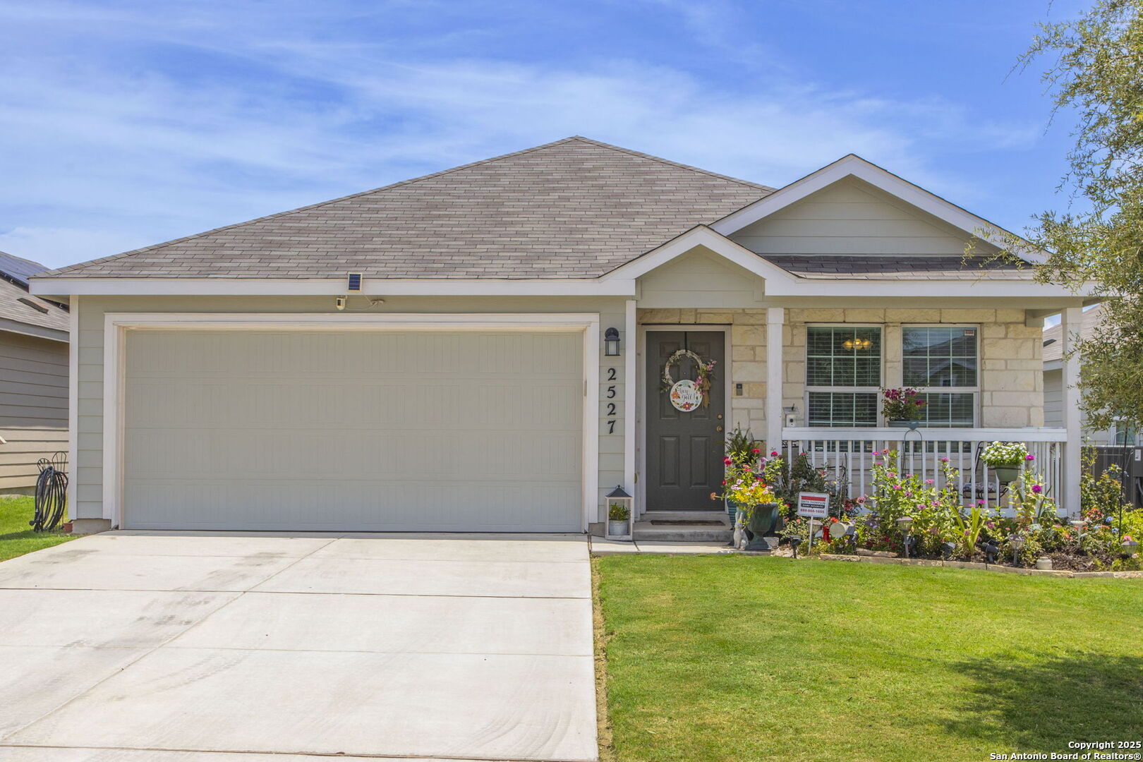 PRISTINE HOME IN BEAUTIFUL VOSS FARMS, CLOSE TO THE FABULOUS RECREATION CENTER, PLAYGROUND AND ELEMENTARY SCHOOL! VOSS FARMS IS A SOLAR POWERED COMMUNITY FOR THE ECO-CONSCIOUS, OFFERING PERSONS AN ENERGY EFFICIENT HOUSING SOLUTION, FOR LOW ELECTRIC BILLS. HOT SUMMERS? NO PROBLEM! SPECIAL FEATURES INCLUDE A RELAXING FRONT PORCH, GRACEFUL ENTRY, OPEN FLOOR PLAN WITH GALLEY KITCHEN, GRANITE COUNTERS, GENEROUS CABINET SPACE, PANTRY, DISHWASHER, STAINLESS SINK,SMOOTH TOP STOVE/OVEN AND BUILT IN MICROWAVE! THE RECESSED LIGHTING ADDS JUST THE RIGHT TOUCH TO AN ALREADY BRIGHT INTERIOR WITH PLENTIFUL WINDOWS AND PLANTATION SHUTTERS. THE OWNER'S RETREAT IS SEPARATED FROM THE SECONDARY BEDROOMS, IS SPACIOUS, HAS A WALK IN CLOSET AND PRIVATE BATH WITH COMBO TUB/SHOWER AND A GRANITE COUNTER VANITY. THE PROPERTY SITS ON A LEVEL LOT, WITH WONDERFUL CURB APPEAL AND LANDSCAPE DESIGN WITH A 2 CAR GARAGE WITH PULL DOWN STORAGE. EXTRA FEATURES ARE WIFI THERMOSTAT, WIFI GARAGE DOOR OPENER, AND A SECURITY SYSTEM. ENJOY THE CONVENIENCE TO IH 35, NEW BRAUNFELS, GRUENE, SAN ANTONIO, SHOPPING AND DINING CHOICES!