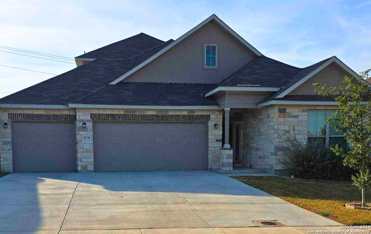 Welcome to 3210 Roan St in the sought-after Highland Grove community of New Braunfels, TX, a beautifully maintained 4-bedroom, 3-bath home offering 2637 sqft of thoughtfully designed living space. Built in 2022 and tucked away on a quiet cul-de-sac, this two-story home features an open-concept layout with high ceilings, a spacious island kitchen with stainless steel appliances, gas cooking, and a walk-in pantry. The main level includes a private home office, a split primary suite with bay windows, dual vanities, a large walk-in shower, and two additional bedrooms with a full bath. Upstairs, you'll find a fourth bedroom, another full bath, and a versatile loft space ideal for a game room or media area. The large backyard boasts a covered patio and privacy fence, perfect for outdoor entertaining. Additional highlights include a 3-car garage, access to community amenities like a pool, playground, and clubhouse. Conveniently located just minutes from I-35, shopping, and dining, this home blends comfort, functionality, and location! schedule your tour today!