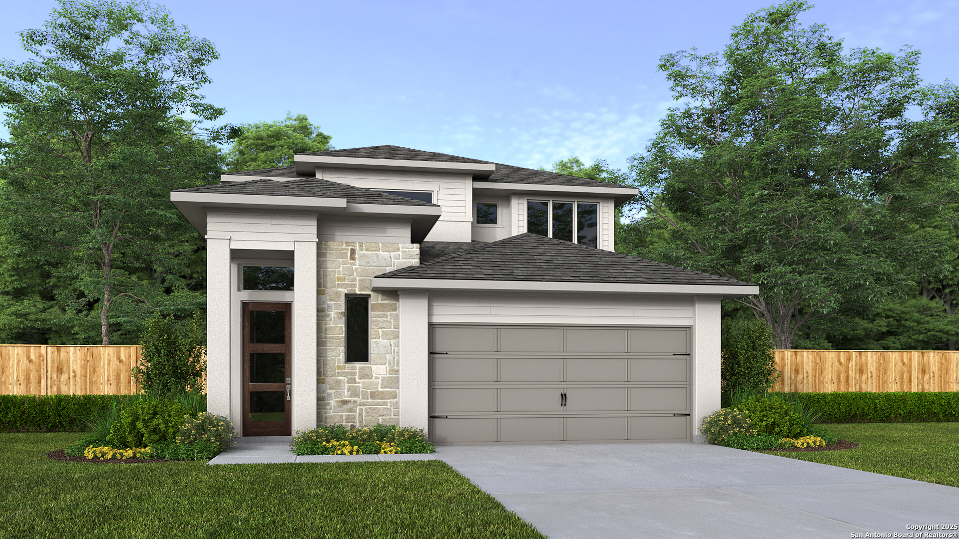 Welcoming entry features 13-foot ceiling. Family room with a wood mantel fireplace flows into the kitchen that offers a corner walk-in pantry, 5-burner gas cooktop and inviting island with built-in seating space. Dining area with wall of windows. Primary suite includes bedroom with wall of windows. Dual vanities, glass-enclosed shower and two-walk in closets in primary bath. Game room, a guest suite with a full bath and additional bedrooms completes the second floor. Abundant closet space throughout. Covered backyard patio and 6-zone sprinkler system. Mud room and half bath off two-car garage.