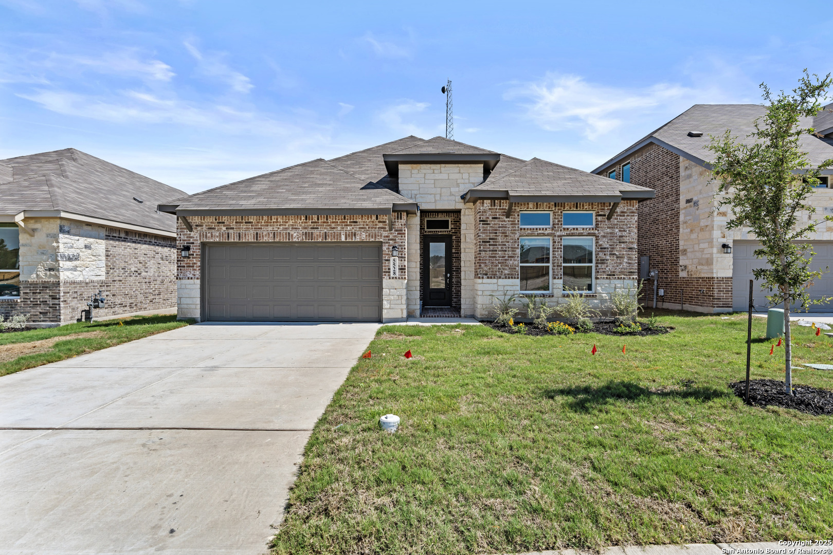 This single story home boasts an impressive four bedrooms, three full baths and a separate office space with french doors all on a single level! Beautiful finishes include laminate plank flooring, upgraded gas stainless steel appliances, irrigation, blinds, and a 1-2-10 New Construction Home warranty.