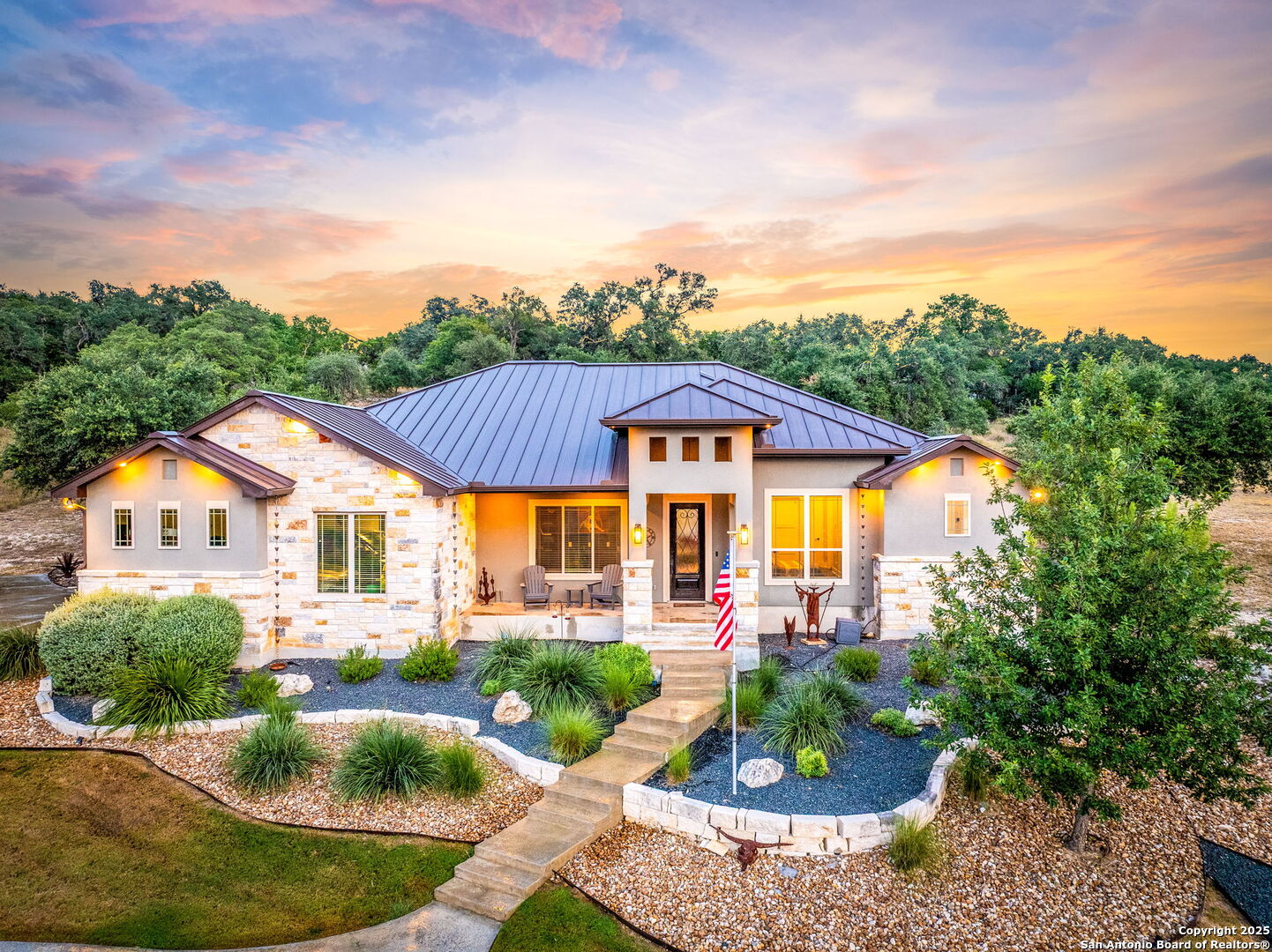Custom home on a 1.6-acre lot within the prestigious guard-gated community of Copper Ridge in New Braunfels. Panoramic Hill Country views right from the comfort of the back porch oasis. Designer finishes throughout the expansive 4-bedroom, 3-bath layout. Granite counters, custom built-ins, spacious walk-in shower, and dual vanities in the owner's suite attest to the quality. Kitchen features an oversized island, upgraded appliances, and a convenient water line plumbed to coffee maker. Upgrades designed to make life both comfortable and carefree include modern lighting and fans, electric fireplace, Generac Generator, extensive backyard landscaping for safety and charm, pergola with shade sail just to name a few. Practical features-such as the resort-style heated pool for year-round relaxation, the workshop off the garage, and a laundry room equipped with a dog washing station and a laundry chute from the owner's closet-have made daily living a true pleasure. Copper Ridge offers amenities for every interest, including a neighborhood pool, sports courts, a playground, and scenic walking trails.