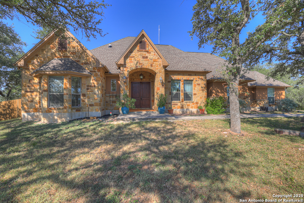 TEXAS HILL COUNTRY GEM WITH POOL - Single story except for bonus room upstairs; entry has double wooden doors, art niches and solar tubes for natural light; Open floor plan with rock fireplace and double French doors overlooking in-ground pool & spa; The kitchen features a double island, granite counter tops, custom cabinets and 2 pantries; Spacious Primary Suite is on a separate wing with access to the patio. The Primary Bathroom has double vanities, two walk-in closets plus a secret closet, walk-in shower and jetted tub.; bedroom 4/study has a full bath adjacent and on the opposite wing Bedrooms 2 & 3 have new wood flooring and share a Jack & Jill bathroom. The huge bonus room is the only room upstairs with an ample storage closet and attic walk-in access. The 34' x 17' in-ground pool is the showpiece of the backyard with spa, lights, & water features. The backyard has beautiful shady oaks and is privacy fenced. The 3-car garage is over-sized and features two openers and a door to the backyard. The property is just a little over a mile from the entrance to River Chase on a corner/cul-de-sac lot. River Chase amenities include 2 parks: a 58-acre park on the Guadalupe River with pavilion, hiking trails, camping grounds, and sports courts, plus the 32-acre clubhouse park with pools, fitness center, walking trails, tennis courts, disc golf, fishing pond, and Veteran's garden. Located just minutes from Historic Gruene, restaurants, retails shopping, music venues, theatres, and health care, and convenient to both Austin and San Antonio.