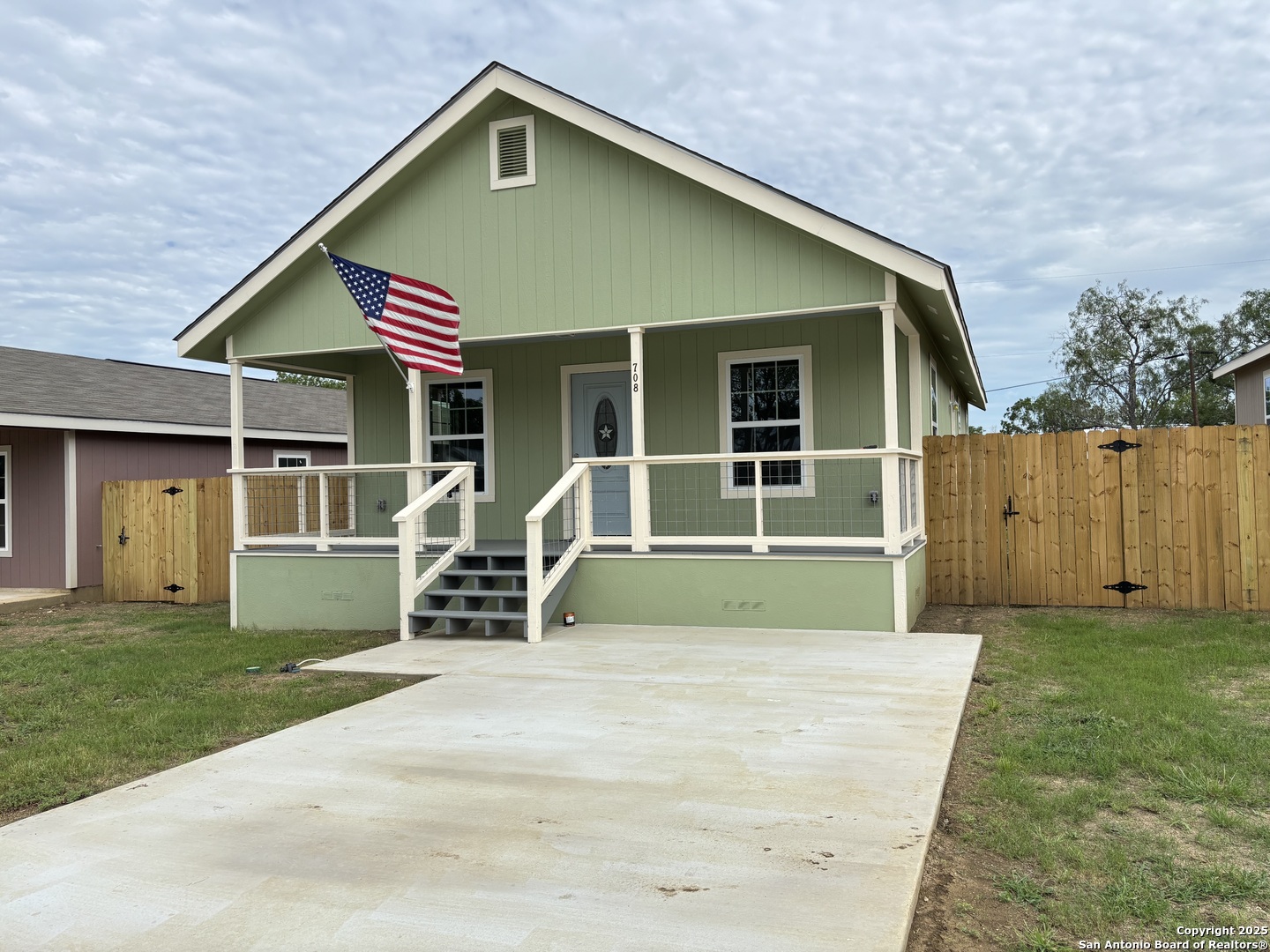 Affordable new construction in the charming little town of Nixon. Three bedroom two bath with a spacious covered front porch. The open living and dining combo is full of natural light that highlights the easy care wood look vinyl floors. The adjacent kitchen is a chef's dream, featuring a butcher block breakfast bar, subway tile backsplash, plentiful cabinets and drawers, and a new stove. A back door off the kitchen makes outdoor entertaining a breeze. Retreat to the master suite, complete with dual closets and a private bath showcasing a beautifully tiled tub/shower combo. Two additional bedrooms share a full hall bath, thoughtfully designed with custom tile work and a handy linen closet just steps away. The dedicated laundry room eliminates the need for trips to the laundromat. Outside, you'll find a great backyard ready for your landscaping ideas and soon to be installed privacy fence ideal for kids & pets.