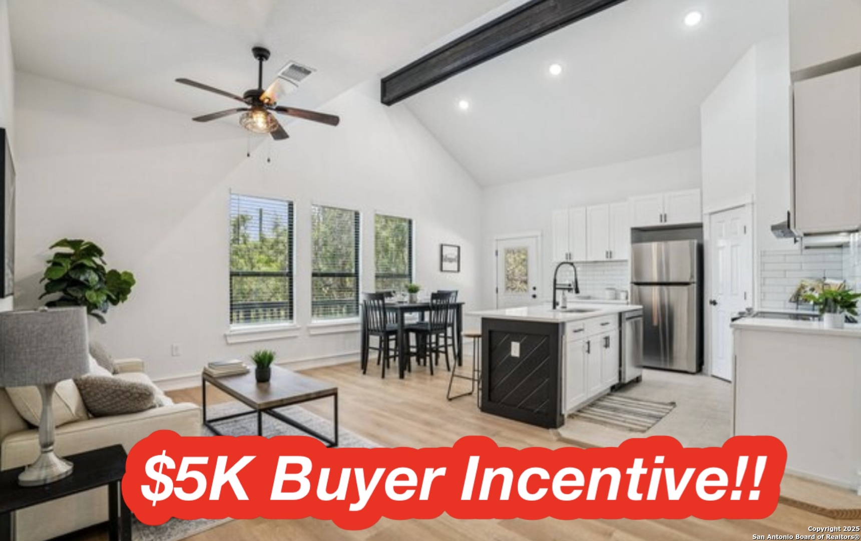 **Seller offering $5K Buyer Incentive to help with closing costs or to buy down interest rate** Beautiful fully renovated one-story, 3bed/2.5 bath home nestled in the heart of Lakehills, just minutes from scenic Medina Lake!! Filled with natural light, the open floor plan creates a warm and welcoming atmosphere from the moment you walk in. Step into a spacious living room featuring brand new luxury flooring, vaulted ceilings, and a striking wood beam that adds character and charm. From there, the space flows seamlessly into a gourmet kitchen with an oversized island, bar seating, quartz countertops, custom cabinetry, and brand new stainless steel appliances-including a refrigerator that conveys with the home. Enjoy a true retreat in the private primary suite, complete with a sleek walk-in shower, modern white vanity, and a generously sized walk-in closet. Two additional bedrooms offer plenty of space, with no carpet throughout for effortless maintenance. Step outside to an expansive front deck, perfect for sipping your morning coffee or relaxing with evening sunsets while soaking in panoramic Hill Country views and glimpses of Medina Lake when filled. Fully transformed with a new roof, siding, windows, updated electrical and plumbing, fresh paint, modern fixtures, a new driveway, and more, this home is truly move-in ready!! Don't miss your opportunity to own a beautifully updated property in this peaceful lakeside community. Schedule your showing today!