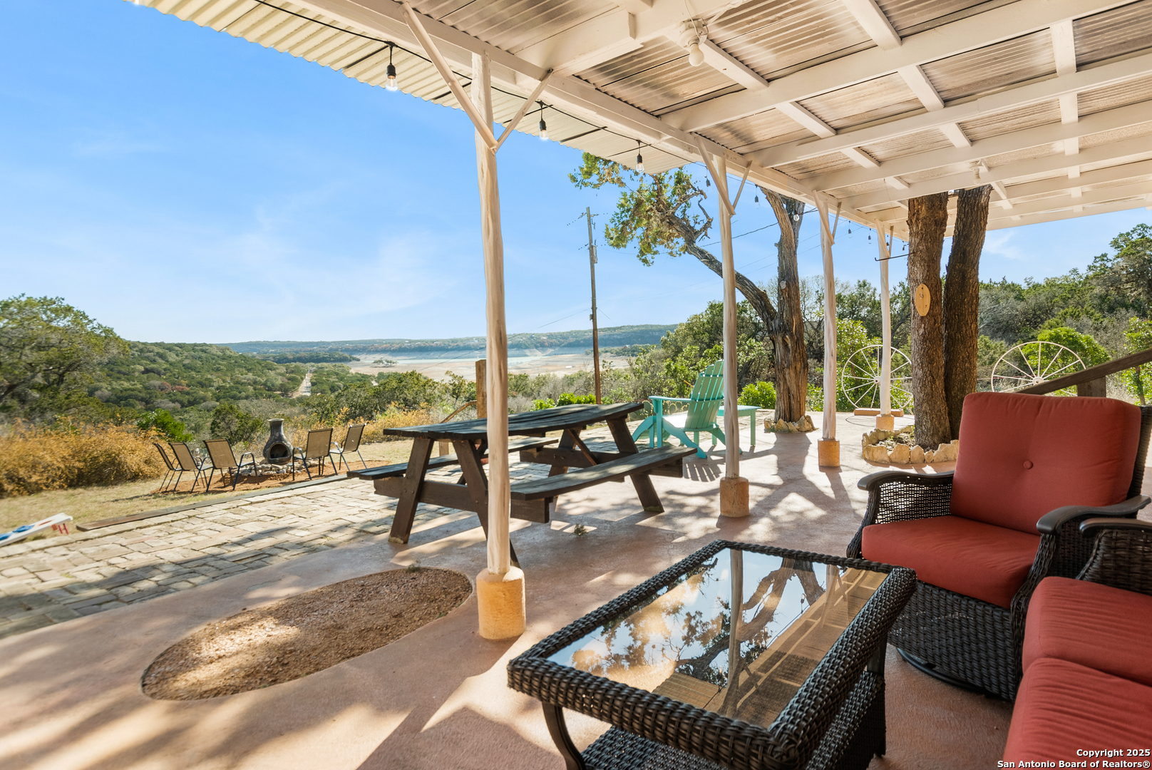 Secluded 2.1-acre retreat overlooking Medina Lake. Perched high with sweeping sunrise views, this charming stone-and-frame cottage offers peace and privacy. The home's character shines through its original stonework, thoughtfully expanded to create a cozy lake view escape. Both bedrooms open to a screened porch with unobstructed lake views, and even the kitchen is positioned to take in the scenery. A unique bird's nest platform provides an elevated perch to enjoy the panorama. Morning light fills the home, while afternoon shade keeps outdoor spaces cool and inviting. A deep private well-recently updated with a new pump and equipment-serves the property. Ideal as a hidden getaway or a tranquil full-time residence, this lake home blends charm, privacy, and unforgettable views.