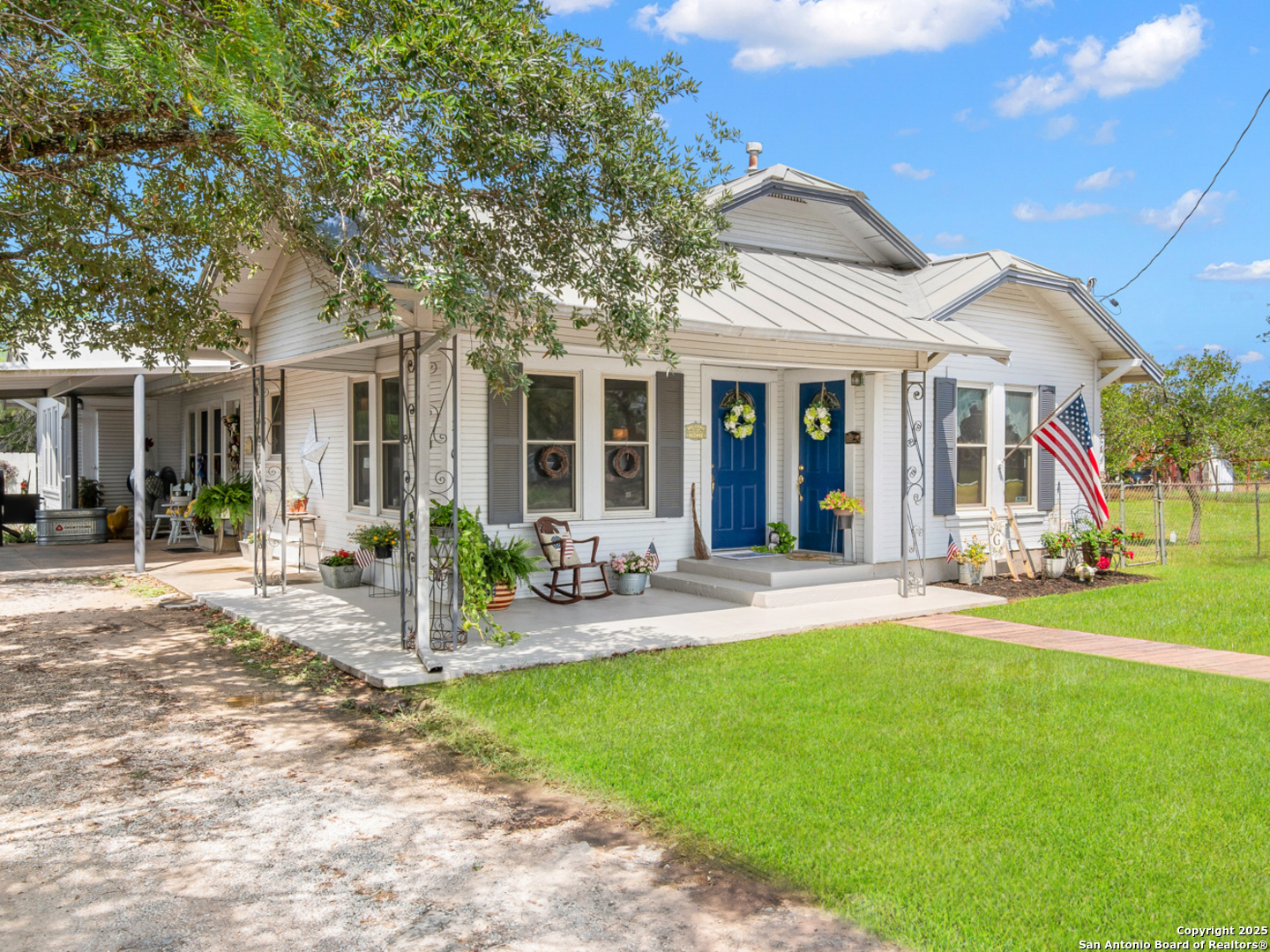 INCREDIBLE OPPORTUNITY! REDUCTION!! VA ASSUMABLE loan!! A special opportunity to own a piece of Poth history! This historic 1935 home, once belonging to one of the original founding families of the town, is full of timeless charm and character. The inviting country bungalow features 3 bedrooms, 3 full baths, an open-concept kitchen and family room with a cozy fireplace, and a great room bathed in natural light. A true time capsule, the home retains much of its original character-from the mid-century oven (still baking like a dream) and natural woodwork to the original cabinetry, cedar-lined linen closet, interior wood shutters, and even a rare basement! More recent touches add fun and functionality, including a custom (and removable) cat window door, whimsical cottage-style landscaping with an antique iron bathtub planter, and a large custom chicken coop-all of which convey with the property. The retro blue refrigerator is always a conversation starter in the bright, cheerful, original yellow-tiled kitchen. Out back, a large oak tree provides ample shade for relaxing evenings, while a spacious cement slab offers room for gardening or future possibilities. Both the front and back porches still feature little footprints from the original owners' children, dated from the 1940s-a heartwarming tribute to the home's enduring legacy. An attached carport serves dual purposes as a covered entertaining area-perfect for grilling or unwinding in rockers while enjoying the sounds of nature. Storage is abundant, with a large trailer (used for storage) that also conveys with the property. Located just a 3-minute drive from the highly desirable Poth ISD, this home is nestled in a friendly and welcoming community. If you're tired of the same cookie-cutter listings and are searching for something truly special-full of history, charm, and a story to tell-come fall in love and make this piece of Poth history your own.