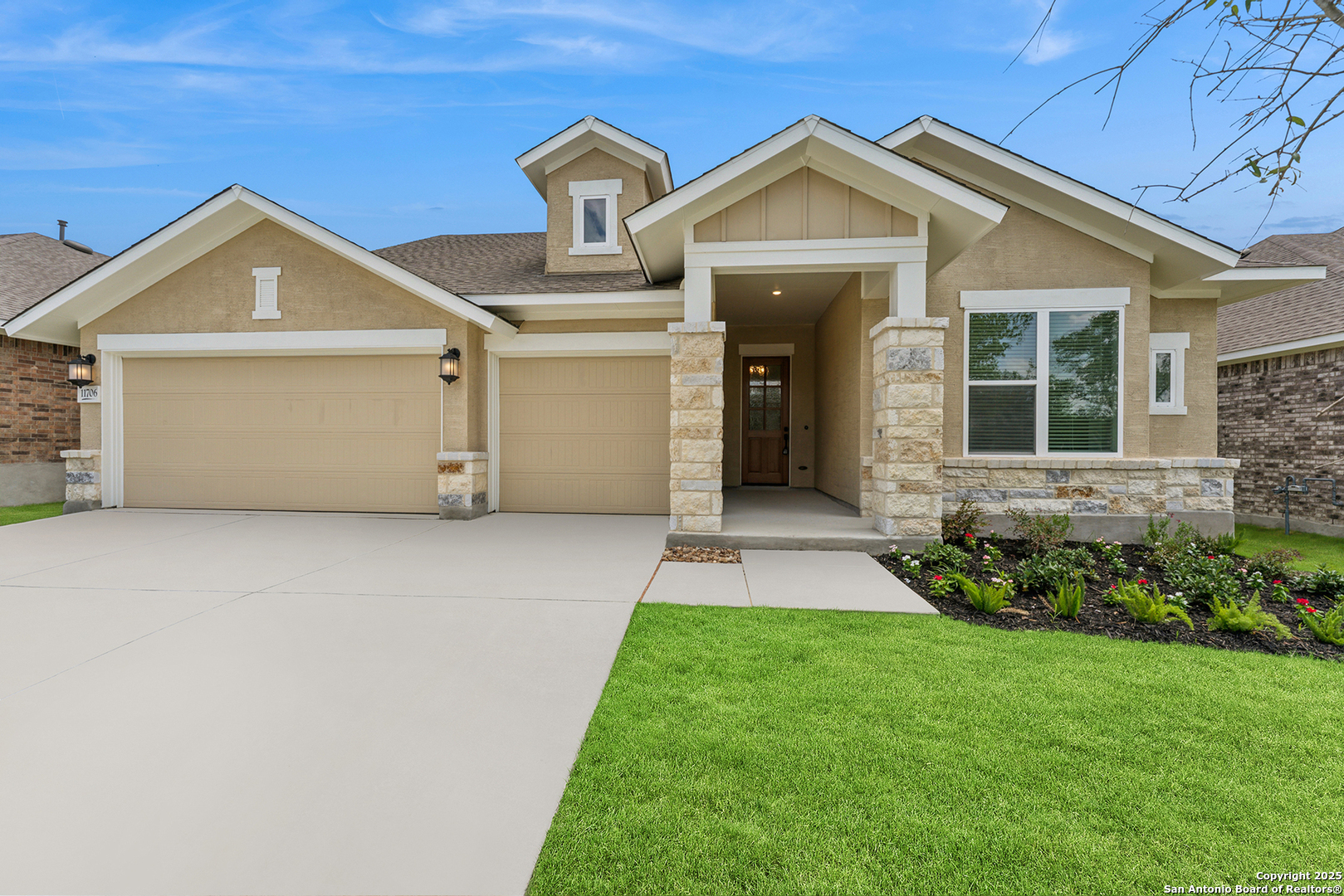 Experience living at its finest in the welcoming and glamorous Rymer by David Weekley floor plan. Your open-concept living spaces offer an innovative, sunlit expanse that invites your ideal interior design style. Extend that style to the versatile specialty room you've created in the spacious study. The gourmet kitchen is shaped to support both solo and collaborative meal prep, and features a family breakfast island and a corner pantry. Each spare bedroom provides a large closet and plenty of room for unique personalities. The guest suite includes a private bathroom, making it an ideal arrangement for visiting loved ones. Your deluxe Owner's Retreat presents a stately bedroom, luxurious bathroom, and an incredible walk-in closet. Your Personal BuilderSM is ready to begin working on your dream home in San Antonio, Texas.