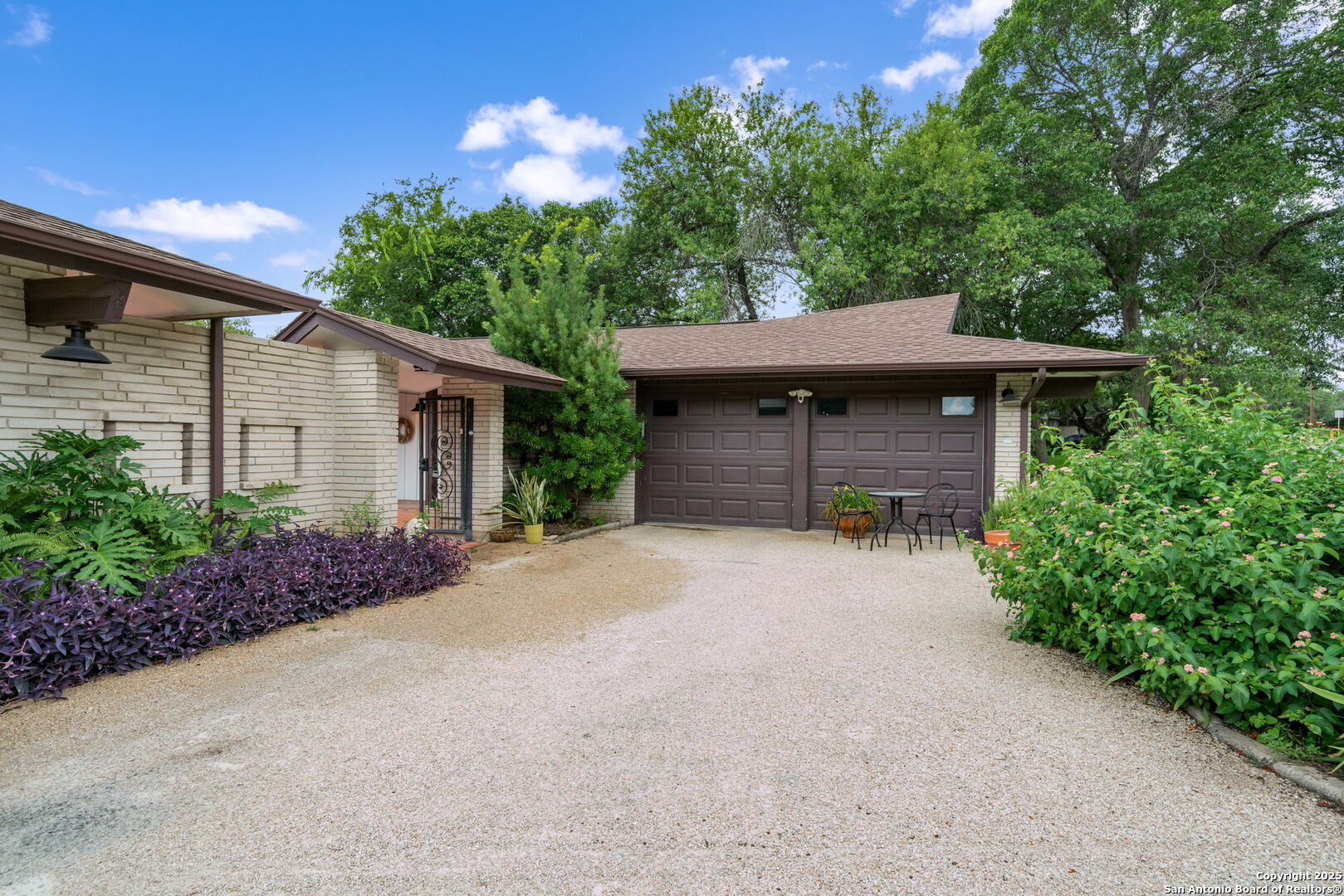 Gorgeous landscaping, a mature lawn, and a stunning mid-century facade and roofline combine to create fantastic curb appeal at this Oak Glen Park gem. An expansive driveway provides plenty of parking and leads guests to a welcoming, but private, gated courtyard that centers the u-shaped floorplan and allows for incredible natural light throughout the house. The floor plan is very flexible, with two living spaces that could instead be utilized for formal dining, office, play, etc. as needs change. A dedicated hallway separates the three bedrooms from the living and entertaining spaces and suggests privacy. The secondary bedrooms share a bath with a uniquely private Jack & Jill setup. The primary bedroom offers two closets, one being a large walk-in, and sliding glass doors that open to the courtyard, while the dedicated bathroom features a walk-in shower, dual sinks and ample storage. The sizeable south-facing backyard with expansive patio and additional conversation deck is very private with an 8' fence, has multiple planters and a ready-made garden, as well as alley access for trash pickup. Special features include a radiant barrier & newer low e windows. The sewer line was replaced in 2018. HVAC is 2yo. The foundation was leveled in 2025; transferrable warranty available. This house is zoned to the popular Castle Hills Elementary!