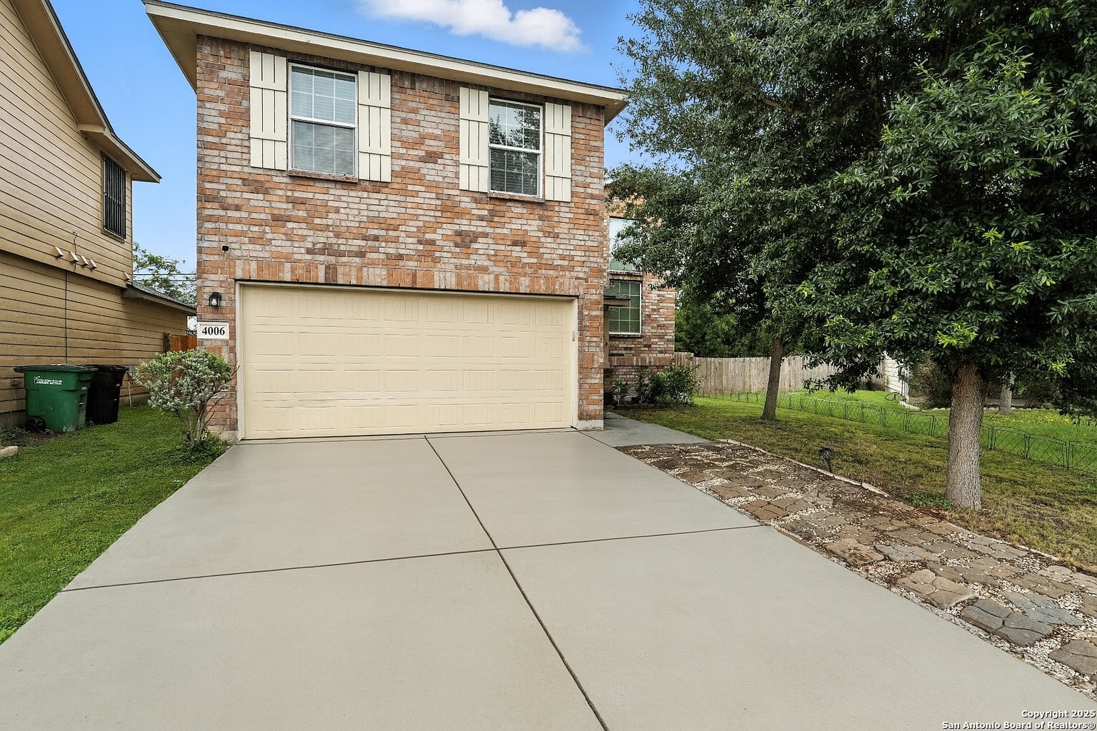 Discover this beautifully maintained 2-story brick home featuring 3 spacious bedrooms and 2.5 bathrooms, located inside Loop 1604. Built in 2014 and thoughtfully upgraded over the years, this home offers both modern comfort and timeless appeal. Step inside to an inviting open-concept layout that seamlessly connects the kitchen, dining, and living areas-perfect for everyday living and entertaining. The lower level boasts durable and stylish laminate flooring throughout, while a versatile flex space is ideal for a home office. Each of the three generously sized bedrooms includes its own walk-in closet, ensuring ample storage and privacy for all. Outside, enjoy the serene backyard with an extended patio surrounded by mature trees-your own private retreat for relaxing or hosting guests.