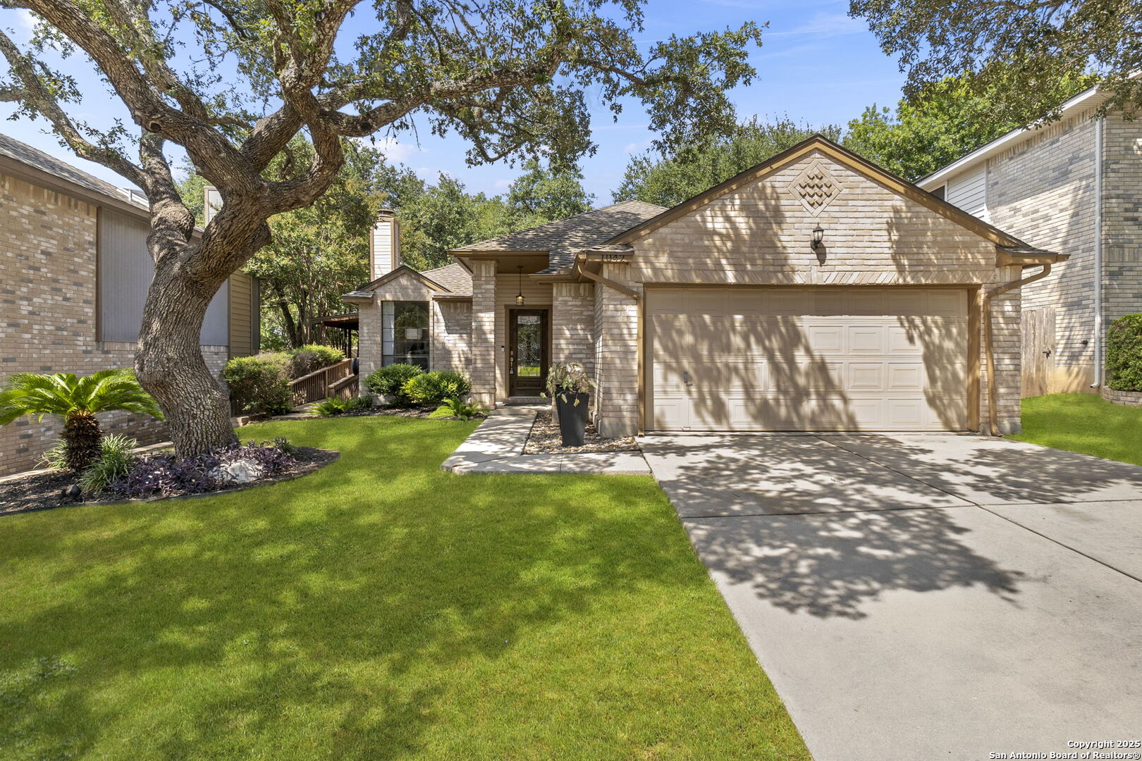 Immaculate ONE story gem with upgrades galore! Enjoy cozy evenings by the floor to ceiling fireplace with hearth & mantle, perfect for holidays & family gatherings. The spacious kitchen offers abundant storage, ample granite countertops along with the open floor plan providing the perfect space for entertaining & everyday living. The primary suite includes an updated, oversized shower with dual shower heads, double vanity, walk-in closet & generous bedroom. Enjoy the privacy of a serene backyard surrounded by majestic oak & crepe myrtle trees! The oversized covered deck allows for extended outdoor living space year-round! Updated lights, interior painting, & carpet make this the perfect move-in ready home. In Stone Oak-close to shopping, entertainment, & more! Don't miss this opportunity!