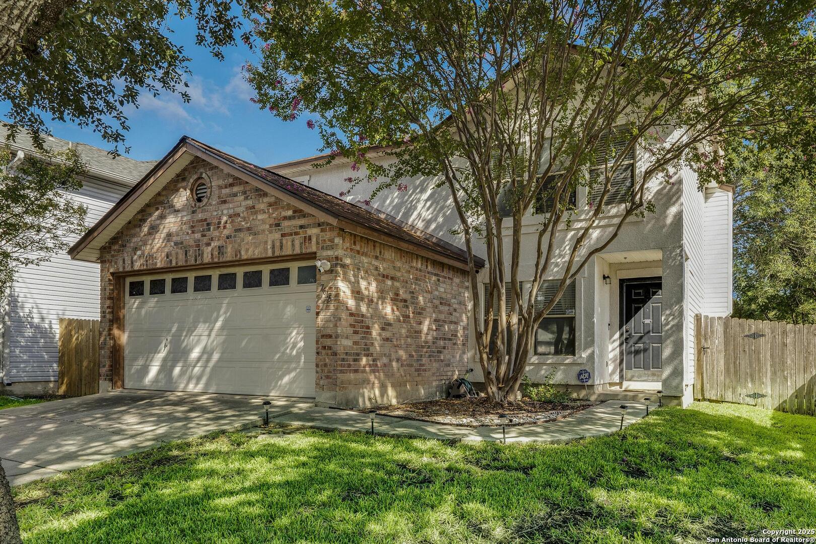 Fall in love with this charming home that's as stylish as it is functional! From the moment you pull up, the mature trees and landscaped yard set the perfect scene for a warm welcome. Step inside and you'll find a bright first-floor living space with fresh, updated flooring-ideal for cozy nights in or hosting friends for game night. The wainscoted fireplace adds a touch of charm, while custom accent lighting gives the space that extra "wow" factor. The kitchen is a total showstopper with subway tile all the way to the ceiling, sleek designer cabinets, and a built-in microwave for easy weeknight meals. The oversized island is the perfect spot to cook together, share a glass of wine, or chat with friends while you whip up appetizers. Natural light pours in through sliding doors that open to your own private, covered patio-great for morning coffee or late-night conversations under the string lights. Upstairs, the primary bedroom feels like your own retreat with gorgeous custom woodwork and an updated bathroom that's as practical as it is pretty. Secondary bedrooms give you plenty of options-whether it's a guest room, home office, or future nursery-and ceiling fans in every room keep things comfortable year-round. And the best part? Your fully fenced backyard backs to a peaceful greenbelt, so you've got privacy and room to relax or even start that garden you've been talking about. It's a short bike ride to the acclaimed Bonnie Conner Park featuring a playground, grills and more! The Igo library is nearby too. Don't wait-this home is ready for your next chapter. Book your tour today before someone else scoops it up! Those who search the address on you tube will find a video of the home. [grass color has been enhanced]