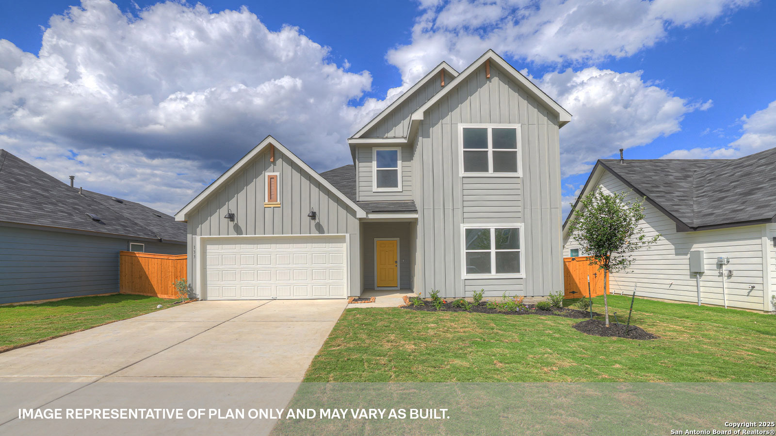SEPTEMBER/OCTOBER COMMUNITY LOCATED NEXT TO I-35. Find all the space you need in our Midland floorplan at Trace in San Marcos, Texas. This two-story home includes 4 bedrooms, 3 bathrooms, a loft and 2 car garage within its 2,164 square feet of living space. Our homes in Trace feature farmhouse exteriors. Step inside this home and walk through the foyer to the kitchen, dining, and family room. This open concept space is perfect for hosting and entertaining, as well as everyday living. The L-shaped kitchen features quartz countertops, a large island facing the family room, a corner pantry closet, stainless-steel appliances and 36'' upper cabinets. The first floor includes 2 bedrooms and 2 bathrooms. The primary bedroom is at the back of the home, off the family room, and includes an attached bathroom. This relaxing bathroom space features a 5' walk in shower, double sink vanity, private toilet area with a door, and a walk-in closet. At the front of the home is a secondary bedroom, bathroom, and utility room. The secondary bathrooms include a tub/shower combination. Ascend the stairs to the loft, an extra living space that could be used as an office or play area for the kids. Two additional bedrooms and a full bathroom are upstairs, allowing amble space for the whole family. The Midland includes vinyl flooring throughout the common areas of the home, and carpet in the bedrooms, loft, and stairwell. All our new homes feature a covered back patio, full sod, irrigation system in the front and back yard, and a 6' privacy fence around the back yard. This home features our America's Smart Home base package, which includes the Video Front Doorbell, Front Door Deadbolt Lock, Home Hub, Thermostat, and Deako Smart Switches.