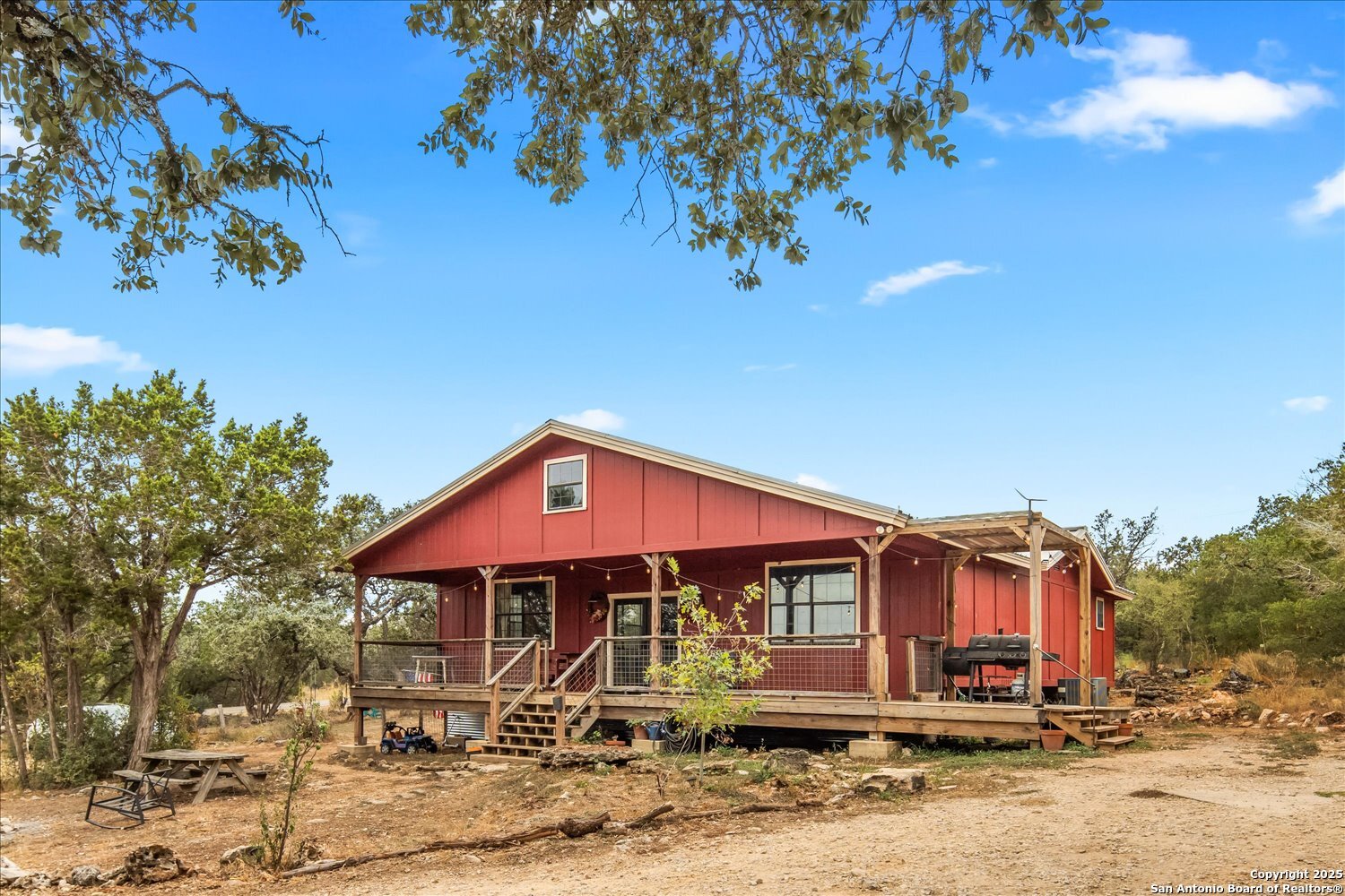 ***MOTIVATED SELLER***Discover a slice of Texas Hill Country on this beautiful 12-acre property in San Marcos. Tucked among live oaks, cedars, and native greenery, this fully fenced property offers a peaceful setting with room to breathe. The 5-bedroom, 3.5-bathroom site-built home features custom wood floors, exposed beams, and open living spaces that feel both welcoming and spacious. The additional four bedrooms are generously sized, with one bedroom including a dedicated half bath-perfect for guests. Throughout the home, you'll find built-ins that add both character and convenience, plus a well-situated laundry room with plenty of space. A large front deck invites you to enjoy the natural surroundings, while inside, the kitchen impresses with a farmhouse sink, huge island, stainless steel appliances, and open-faced cabinets. The primary suite includes an ensuite bathroom with a walk-in shower, and a versatile loft area upstairs is ideal for a guest room, playroom, or extra storage. There's even a walk-in pantry with a charming farmhouse screen door. The property also includes a 30x25 detached workshop, ideal for storage, hobbies, or extra parking, plus a cowboy pool for cooling off on hot days. Enjoy quiet country living with easy access to Austin, Texas State University, and San Antonio. Spend evenings stargazing, watching for wildlife like deer and turkeys, and soaking in the beauty of this peaceful Texas retreat.